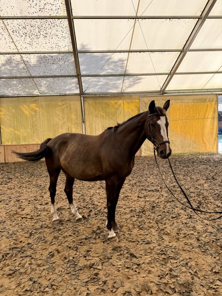 Stokrotka Lazar Wiek: 14 lat Matka: Seniorita/Radiator Ojciec: Quinto się B/Quinar/Quidam de Revel Stokrotka Lazar to klacz, która w przeszłości była użytkowana jako koń sportowy (skoki przez przeszkody) oraz w hodowli- sprawdzona jako matka. Obecnie ze względu na brak mojego czasu klacz nie jest w regularnym treningu, mimo to, jest bezproblemowa w obsłudze, grzeczna przy czyszczeniu, siodłaniu, kąpieli i innych zabiegach pielęgnacyjnych. W czasie jazdy jest całkowicie bezpieczna, skupiona na jeźdźcu, nie bryka, nie ponosi, nie rozprasza się tym co się dzieje dookoła .Od urodzenia ma niewykształcone oko (klacz na nie nie widzi) mimo tego świetnie sobie radzi w życiu codziennym, podczas jazdy zupełnie się tego nie odczuwa. Klacz obecnie przebywa w stadzie, nie wykazuje wobec innych koni agresywnego zachowania. Chodzi w tereny zarówno sama jak i z innym końmi. Zdrowa, nigdy nie kontuzjowana, bez narowów. Klacz idealnie nada się na konia rodzinnego bądź do małego sportu, zarówno skokow przez przeszkody jak i ujeżdżenia (poprawna we wszystkich trzech chodach). Zainteresowanych zapraszam do kontaktu