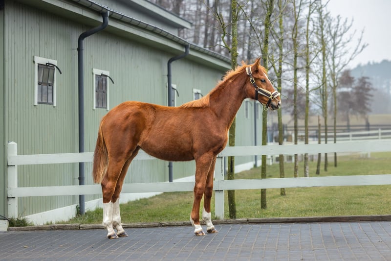 Daughter of the outstanding stallion Taloubet Z, a legend of Zangersheide, and the mare Umbrella Red Wine (by Minute Man), descending from the female line of the stallion Berlin, as well as the legendary Holsteiner Stamm 890. Stamm 890 has produced such exceptional horses as Cassal, making this line one of the most sought-after in show jumping breeding.