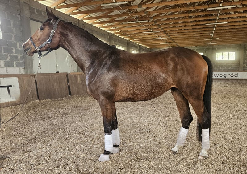 Elegant Polish Halfbred Mare for Sale Discover this beautiful bay mare, born in 2021, standing at a commanding height of 172 cm. With her impressive breeding background, she embodies quality and potential for various disciplines. Well-built and graceful,