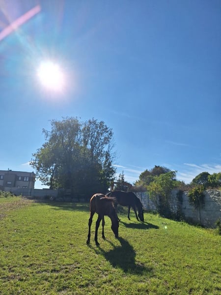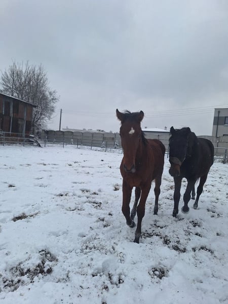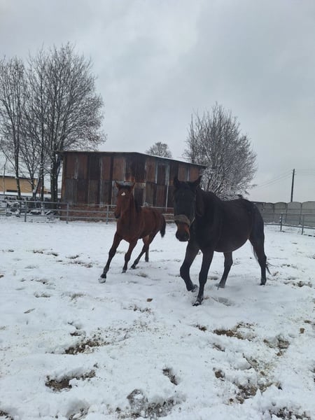 Witam, mam do sprzedania 6 letnią klacz z rocznym źrebakiem ogierem. Konie posiadają paszport są szczepione, zdrowe, kopyta mają regularnie robione. Klacz nie jest zajeżdżona, miała na sobie kilka razy siodło, jest lonżowana majac na sobie siodło, jest bezproblemowa w czyszczeniu i w codziennych obowiązkach natomiast źrebak jest surowy. Klacz ma 170 cm w kłębie a źrebak jeszcze rośnie ale jest juz bardzo wysoki jak na swój wiek. Więcej informacji i zdjęc na priv.