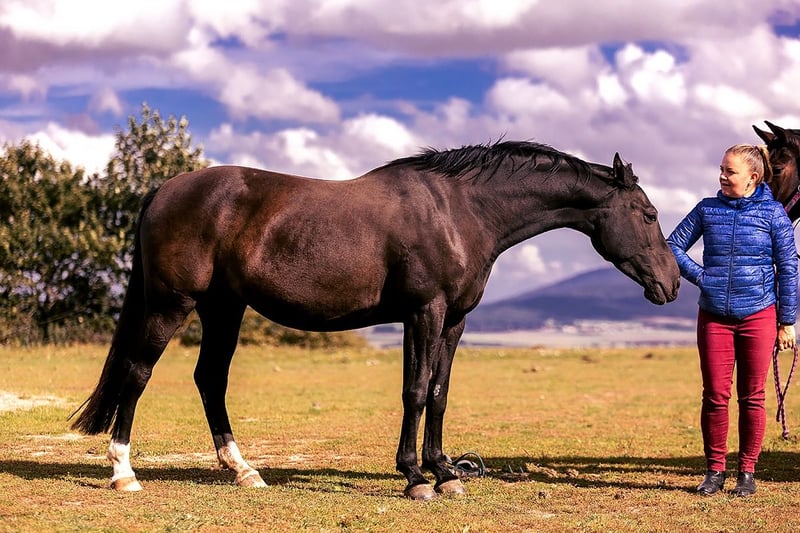 Klacz Baklava, kara Wychowana u nas na rozległych pastwiskach w stadzie, zna i umie być w boksie, zadbana różnorodnym żywieniem, probiotyki, witaminy, stomatologicznie od 2 r.ż., wyrwane wilczaki (pełna dokumentacja). Wychów pastwiskowy na pagórkach w stadzie, oraz powolne wdrażanie konia do treningu dają najlepsza profilaktykę przeciw kontuzjom. Najlepszy wiek konia, który jest już przygotowany do intensywniejszych treningów i możliwie najlepiej zabezpieczony przez przypadkowymi kontuzjami. Kon w którego zainwestujesz tylko czas, nie wymaga leczenia, robienia zębów, kopyt itd. nigdy nie kuta. Bardzo dobrze wykorzystuje paszę, je sieczkę aby dostać probiotyk i elektrolity. Zdj RTG nie wykazały żadnych nieprawidłowosci , piękne zdrowe duże kopyta i strzałki. Nigdy nie kulała, nie miała przeziębień, biegunek itd. Niederkowana, derki zna, jednak ma tak niesamowity włos który szybko schnie. Mycie i kapiel łącznie z głową po prostu lubi. Ojciec Roland to ojciec sześciu uznanych ogierów, wielu córek wpisanych do ksiąg hodowlanych, posiada znakomitą połączenie ujeżdżeniowych i skokowych, sam startował w konkurencji skoków, znaczna część potomstwa że ci się doskonałymi wynikami w konkurencji ujeżdżenia. Matka po ogierze Le Duc, o rodowodzie skokowo ujeżdżeniowym, ukończył zakład treningowy z oceną bardzo dobrą, ogier o niezwykłej urodzie i ogromnych zdolnościach ruchowych. Klacz ma 161 cm, nie jest szczypiorkiem. Jest to klacz w typie „jestem gwiazdorem” – potrzebuje o jeźdźca trochę postawienia na pomoce ale czasem również dania się popisywać przez chwilę a potem odwdzięczy się za to „docenienie”. Jak jest jechana w pomocach to nie robi popisów, czeka na znak ze można. Koń nie spracowany treningami, pracujący 1-2 razy w tyg, chodzi w teren, na lonży pojedynczej i podwójnej, skacze (co wyraźnie lubi), zwrotna, chętnie robi pracę ujeżdżeniową. Zajeżdżona 2 lata temu, nie za dużo pracuje, ostatnie pół roku nic nie robiła (brak przestrzeni czasowej, oraz czekała w innej stajni w zapasie na et – nie jest źrebna) Klacz bardzo starająca się, czasem aż za bardzo, ambitna, dokładna w skoku. To koń dla kogoś kto chce po trochę pracować codziennie. Lubi publiczność. Niespecjalnie pasuje jej praca raz w tygodniu a u nas nie wyrabiamy się z pracą częściej. Prowadzimy szkolenia a tak ambitny koń nie ma tu zastosowania. Spora część naszej uwagi zajmuje hodowla i szansę na wygospodarowanie czasu częściej jest niewielka. Klacz jeżdżona tylko przez Adama Susłowskiego. Bezproblemowa w transporcie. Zależy nam aby z konia ktoś korzystał treningowo przy zadbaniu o swobodny ruch poza treningiem. Koń nie nadaje się dla początkującego, tylko podróżującego na grzbiecie jeźdźca. Wymaga świadomego prowadzenia w korytarzu pomocy, dającego możliwość wydłużania szyi w skoku. Klacz pod opieką fizjoterapeuty Equibility. Na miejscu do obejrzenia jeszcze 2-3 konie.