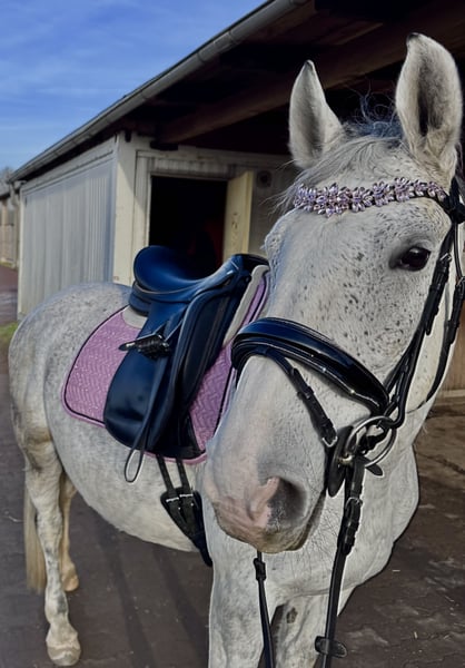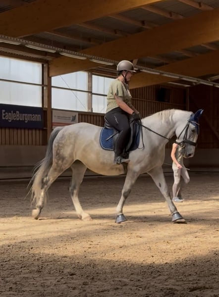 Schweren Herzens trenne ich mich von meiner Stute, da wir reiterlich leider nicht zueinander finden. Sie ist eine charakterstarke Stute und daher kein Anfängerpferd. Mit einem erfahrenen, konsequenten Reiter zeigt sie jedoch ihr Potenzial und arbeitet gut mit. Die tägliche Arbeit mit ihr macht sehr viel Spaß, und sie hat einen tollen, ehrlichen Charakter. Sie hat ein Stockmaß von 1,61m und ist 9 Jahre alt. Kleine Sprünge meistert sie zuverlässig dies konnte sie auf unserem Hofturnier unter Beweis stellen. Ausritte im Gelände macht sie alleine als auch mit anderen Pferden super mit. Sie kennt den Umgang mit Kindern und Hunden. Ich wünsche mir für sie einen passenden Platz mit erfahrener Bezugsperson, bei der sie weiter gefördert wird. Ihre Zähne wurden im November kontrolliert. Sie genießt regelmäßige Ostheopatie Behandlungen. Der Sattel kann mit erworben werden. Er wurde auch erst angepasst. Platz vor Preis! Bei ernsthaftem Interesse freue ich mich über eine Nachricht.