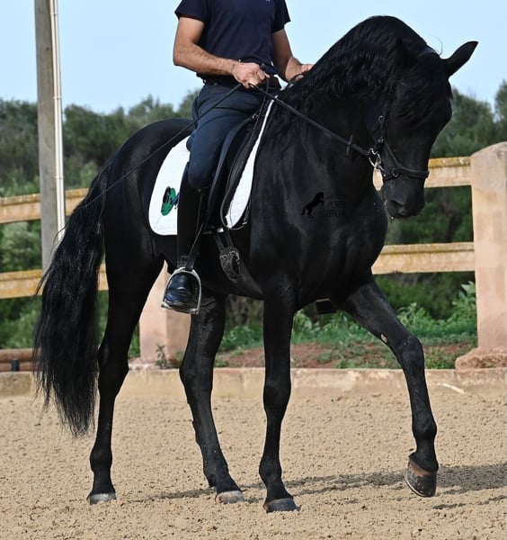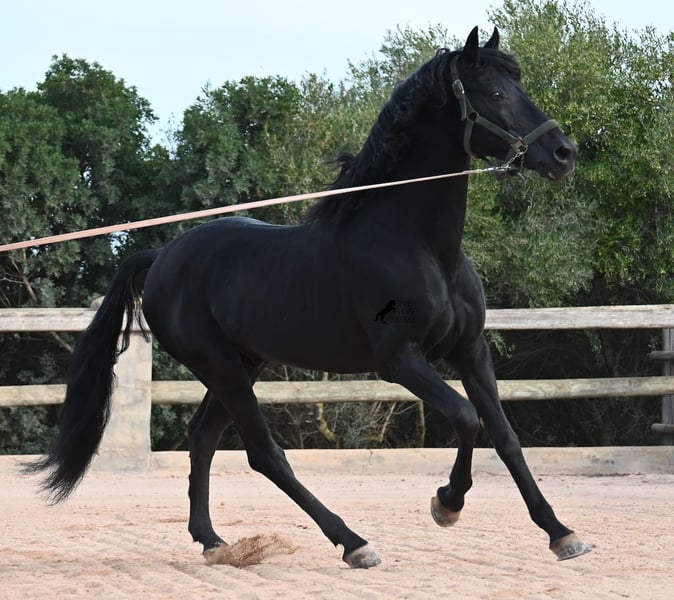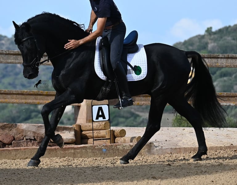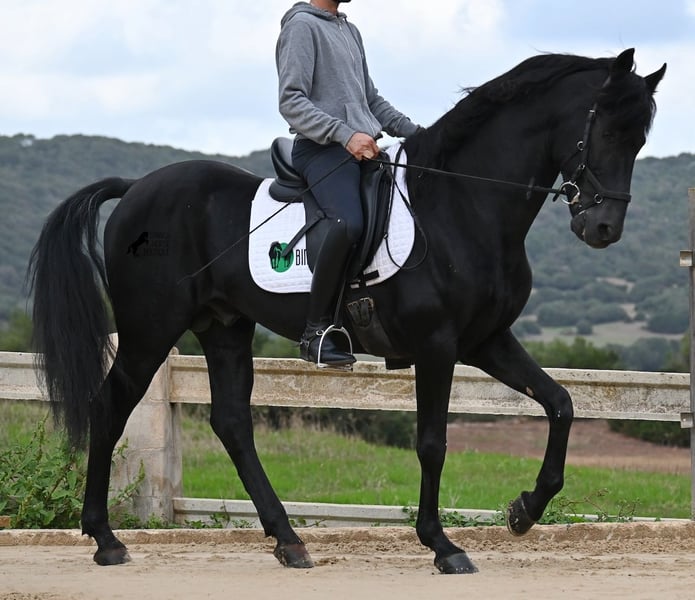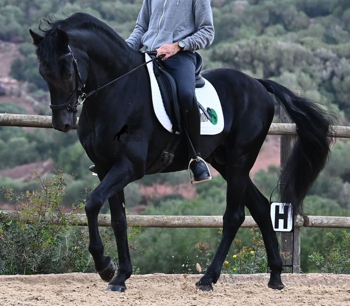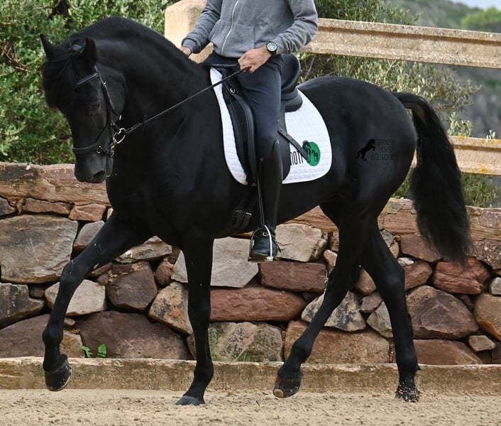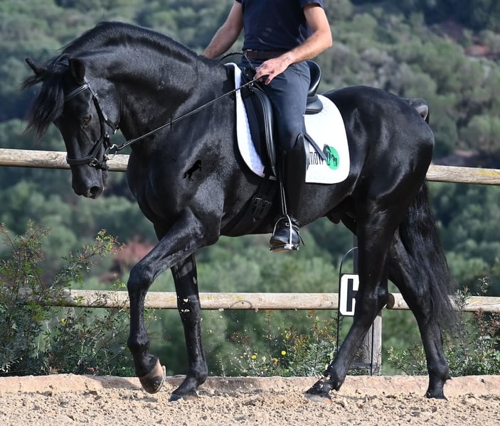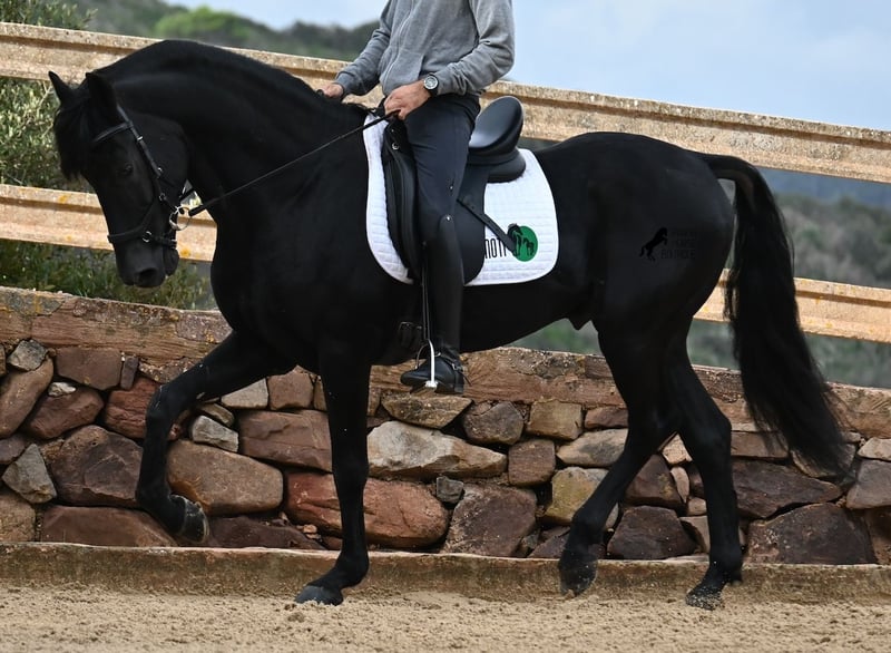 Deze 2010 geboren, pure Menorquín-hengst is een veelzijdige partner. Een liefdevolle, relaxte gentleman die alles goed wil doen en zeer zorgzaam omgaat met mensen, om altijd te voldoen. Fysiek in topconditie, op zijn best van leeftijd, maar het voordeel dat hij geen jonge gekkigheden meer in zijn hoofd heeft, waardoor je alles met hem eenvoudig kunt genieten. Of het nu gaat om omgang, waarin hij geen hengstengebaren vertoont en zich voorbeeldig gedraagt, of onder het zadel, waar hij volledig meedoet met de training en daarna rustig in galop of stap kan worden afgerond. Omdat hij ervaring heeft met Fiesta, is hij zeer betrouwbaar en blijft hij kalm, ongeacht waar de buitenrit naartoe leidt. Hoewel hij al gedekt heeft en nakomelingen heeft, blijft hij zelf een absolute gentleman in het gezelschap van merries. Voor wie geen hengst kan houden, kan de castratie geregeld worden. Hij wordt éénhandig gereden volgens de lokale Doma Menorquina-rijstijl, maar kent ook de Engelse rijstijl met twee handen aan de teugel. Door zijn Fiesta-ervaring beschikt hij ook over de lokale Bot, het stijgen en het lopen op de achterhand. Maar wie dat niet wil, hoeft zich geen zorgen te maken; hij is zo goed opgeleid en opgevoed dat hij geen "foute knoppen" kan krijgen en ongewild iets doet. Voor degenen die de Bot willen leren, leg ik het graag uit! Hij gaat graag het terrein in, zowel alleen als met andere paarden (ook merries!), en wie plezier heeft in dressuur, kan met hem de Spaanse pas leren. Een ideale, fijne barokke paardenvriend waarmee je nog vele mooie jaren samen kunt genieten. Zijn stokmaat is 1,55 m, waardoor hij mooi compact is. Prijs volgens de kwaliteit. BTW is op aanvraag aftrekbaar. Hij staat momenteel op Menorca! Video’s en afstamming op aanvraag. Graag organiseer ik ter plaatse een keuring, castratie, training, transport of zelfs uw reis, mocht u persoonlijk komen kijken. Details hierover vind je op mijn website of in een gesprek. Groeten uit Spanje!