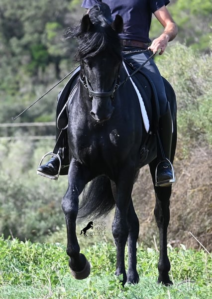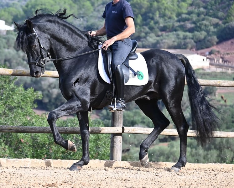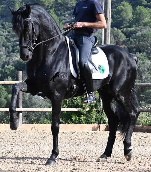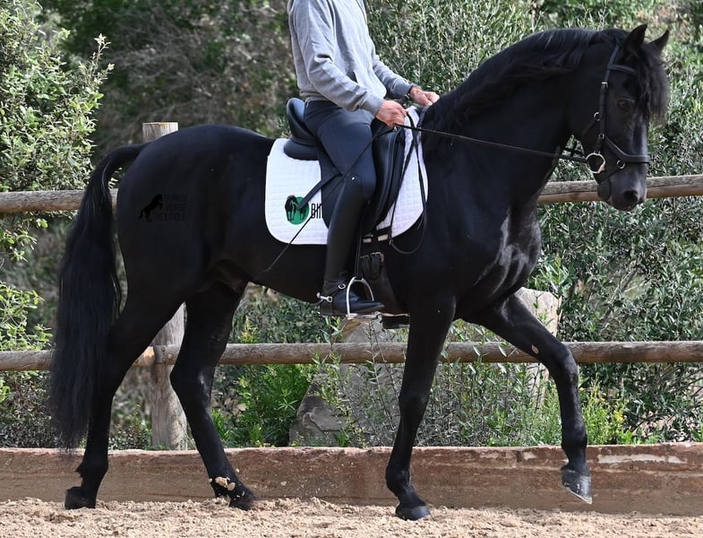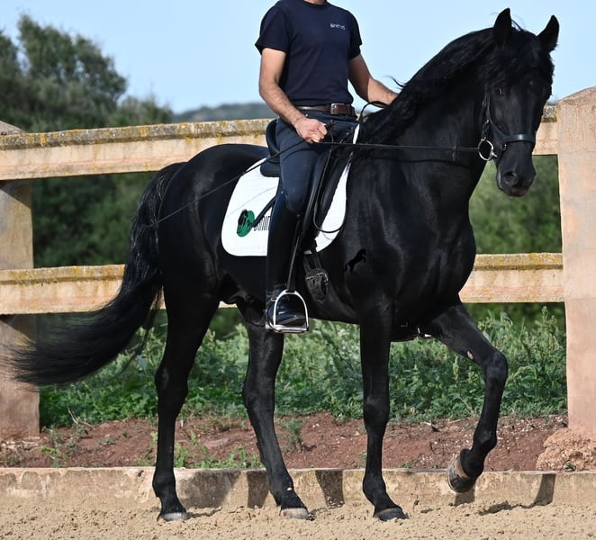 This 2010-born purebred Menorquin stallion is a versatile partner. He is a loving, relaxed gentleman who aims to please and is very gentle in his interactions with people. Physically fit and in the prime of his life, he has the advantage of not having any youthful antics, allowing you to simply enjoy your time with him. He behaves well and has no stallion manners when handled. Under saddle, he is fully engaged in his work, and afterwards, you can leisurely conclude your training session with a relaxed walk on a loose rein. With his experience in Fiesta, he is exceptionally reliable and nothing seems to disturb his calm, no matter where the ride leads. Although he has already covered mares and has offspring, he remains an absolute gentleman even in the presence of mares. For those who cannot keep a stallion, castration can easily be arranged. He is ridden one-handed in the local Doma Menorquina style but is also familiar with the English riding style using two hands on a snaffle. His repertoire includes local bot, rearing, and walking on his hindquarters due to his Fiesta experience. However, if you prefer not to pursue these skills, you can rest assured that he is so well-trained and educated that you cannot "press the wrong buttons" and he won't do anything unwanted. For those interested in learning the bot, I would be happy to explain how ;) He enjoys going out on trails, both alone and with other horses (including mares!), and for those who enjoy lessons, he can perform the Spanish walk. An ideal, fine, baroque horse friend with whom you can enjoy many beautiful years together. His height is 155 cm, making him nicely compact. The price reflects his quality, and VAT can be shown. He is currently located in Menorca! Videos and pedigree are available upon request. I can also arrange for a veterinary check, castration, training, transport, or your travel arrangements if you wish to come see him in person. More details can be found on my page or in conversation. Greetings from Spain!