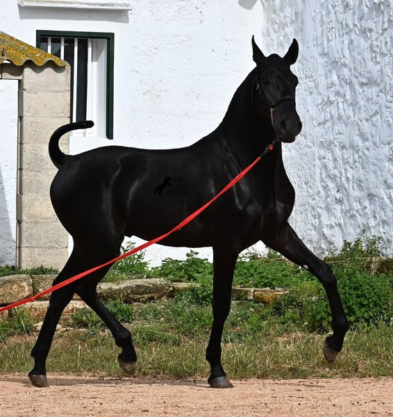 Ce poulain Menorquin, né en 2024, est déjà un véritable coup de cœur ! D'une élégance incroyable pour son âge, il attire immédiatement l'attention. Son mouvement est également remarquable, car il possède non seulement une belle phase de suspension au trot et une tendance à l'élévation au galop, mais il est aussi très souple et flexible. Cela le rendra intéressant plus tard pour l'équitation de travail, bien qu'il s'épanouisse certainement dans de nombreux domaines, y compris en tant que cheval de loisir pur :) Il a déjà été présenté lors d'une exposition de chevaux et connaît donc le travail en longe avec un licol de présentation (exigence de l'exposition), le chargement, et il s'habitue à de nouveaux environnements, ce qui lui a permis d'acquérir une base solide dès son jeune âge. Son pedigree est également impressionnant, car l'un de ses grands-pères est l'un des trois étalons ÉLITE de la race, et son autre grand-père est un étalon RECOMENADO qui connaît de grands succès en dressage. Il vit en troupeau dans un système de détention robuste, mais il connaît aussi la vie en box. Sa taille finale attendue est d'environ 163 cm. Si vous souhaitez l'acquérir plus tard, un emplacement pour son élevage peut être organisé. Des vidéos et des informations sur son pedigree sont disponibles sur demande. Son emplacement est à Minorque. Je peux également organiser sur place une visite de poulain, le transport ou votre voyage si vous souhaitez venir le voir personnellement. Pour plus de détails, n'hésitez pas à consulter ma page ou à en discuter. Salutations d'Espagne.