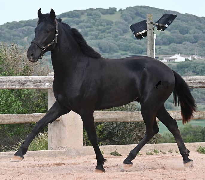 Este semental Menorquín de pura raza nacido en 2024 es un joven elegante con mucho potencial. Alegre, como se espera de un potro joven, confiado con las personas y un diamante en bruto que podrá brillar en muchas disciplinas en el futuro. Tiene movimientos muy correctos, es muy ágil, fuerte en la parte trasera y armonioso en su estructura. Por ello, será un candidato ideal para la doma clásica, la equitación de trabajo, el concurso completo y, por supuesto, como caballo de ocio, ¡seguro que le proporcionará mucha alegría! Actualmente, se le está enseñando a trabajar en la cuerda con cabezada de establo, para construir lentamente una base de trabajo y pasar más tiempo con él. Aparte de eso, disfruta de la vida de potro en la manada, pasa 24 horas en un paddock resistente sobre suelos duros y recorre muchos kilómetros jugando con sus amigos. Es robusto, tiene buena calidad de casco y patas claras. En la manada, busca el contacto con las personas y ya se vuelve muy cariñoso. Su marca negra también es excelente, ya que incluso aparecen puntos de leopardo, a pesar de estar siempre al aire libre y expuesto al sol. Su padre es un semental destacado, ¡tres de sus descendientes han sido campeones de raza! La madre aporta sangre de campeona en su linaje, y en combinación, seguramente también será interesante para criadores en el futuro. Ya mide unos impresionantes 1,61 m y, además de que todavía crecerá varios centímetros, su exterior será aún más barroco. Es manejable con cabezada, muy bien educado en el trato, sin comportamientos de semental, y siempre listo para emprender el gran viaje, ¡esperamos que sea contigo! Para quienes no puedan tener un semental, existe la opción de castración en el lugar. Actualmente, está en Menorca. Videos y pedigrí disponibles bajo solicitud. Con gusto puedo organizar en el lugar una revisión veterinaria, castración, transporte o incluso tu viaje, si deseas venir a verlo en persona. Para más detalles, visita mi página o contacta conmigo. ¡Saludos desde España!