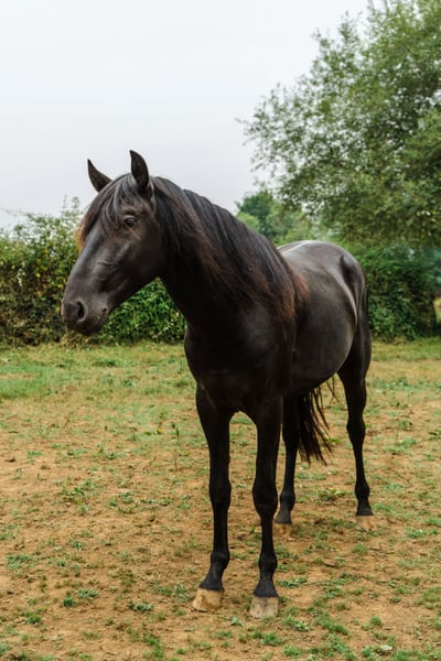 Elegant PRMe stallion, born in 2022, completely black and currently standing around 162 cm, with potential to grow a little more. A young horse with great presence, harmony and an exciting future ahead. He comes from excellent bloodlines, with breed champion stallions in his pedigree, including an ELITE stallion, and a dam who has produced breed champion offspring. Thanks to his pedigree and qualities, he represents a very interesting prospect as a future breeding stallion (subject to approval). He has been raised in the countryside from a young age, living freely with other horses, always handled with respect, patience and good horsemanship, which has helped develop his noble, calm and balanced temperament. Around people he is especially pleasant to work with — quiet, attentive and cooperative, to the point that in daily handling he hardly feels like a stallion at all. He also behaves well with other horses and shows normal, relaxed social behaviour. His training started in autumn 2024, at around 2.5 years of age, working regularly with a professional trainer. During this period a strong focus has been placed on groundwork, where he has learned the basic aids and body control: moving the shoulders, yielding to pressure, responding to signals and building clear communication with the handler. Recently the training has progressed to bringing all the learned elements together, starting to transfer the work under the saddle. He continues to progress calmly and willingly, and he has also accepted the bit very well, introduced gradually as part of his training. So far he has received approximately 70 training sessions, always respecting his pace and focusing on building a solid and positive foundation for the future. He is very attentive and easy to manage in daily life, often the first one waiting when it is feeding time. He currently receives two daily meals of feed with supplements, maintaining excellent condition. A young stallion with an outstanding mindset, a good training foundation and excellent bloodlines, offering potential for sport, further training or breeding. Visits are welcome. We can also organize veterinary examinations, documentation and worldwide transport. DM for more info and videos 🤗 Cheers!