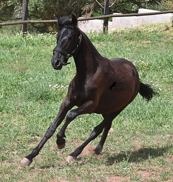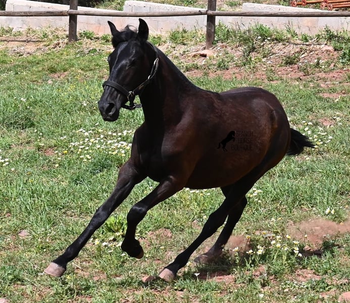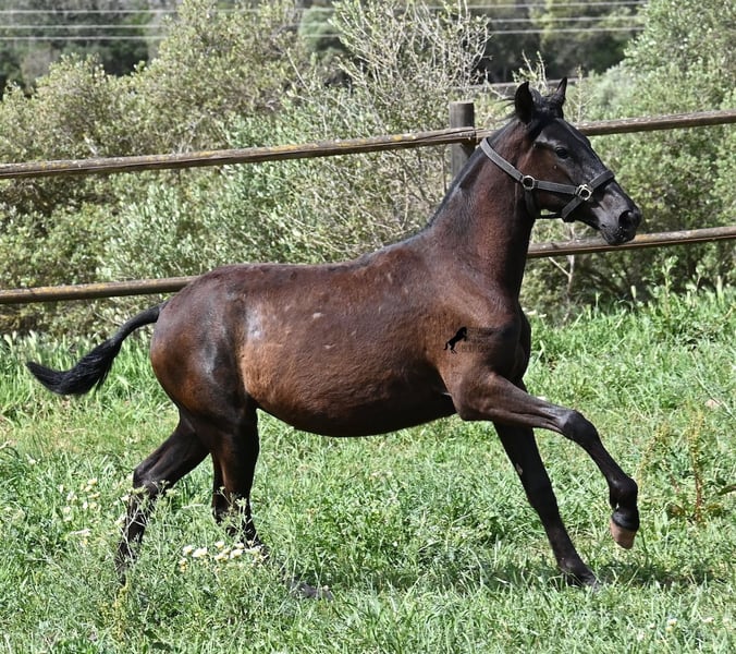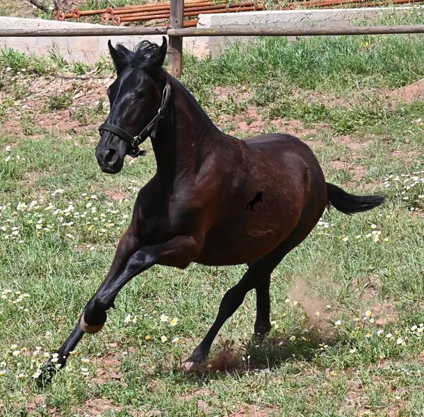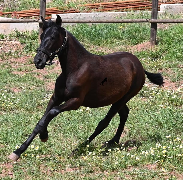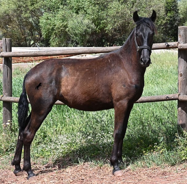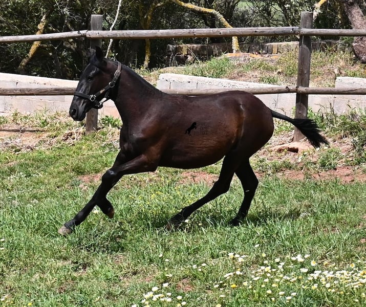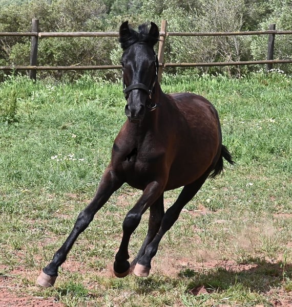 Diese 2025 geborene, reinrassige Menorquinstute, ist eine ganz entzückende, junge Dame! Im Umgang ist sie ganz fein, zutraulich und will wirklich alles richtig machen. Sie wird komplett schwarz (das Tiefschwarz kommt bei Menorquin manchmal erst später) und ist sehr elegant gebaut, mit einem feinen und femininen Köpfchen, sowie den typischen Sichelohren des Menorquin. Ihr Papa ist ein herausragender Hengst, denn 3 (!) seiner Nachfahren wurden RASSECHAMPION! Also hat diese Stute ganz edle Geschwister und auch in der Mutterlinie finden wir Subchampions und einen Rassechampion. Die Linien, die sie in sich trägt, zeichnen sich durch ausdauernde, agile, widerstandsfähige Pferde aus. Somit wird sie später für viele Sparten interessant, wie auch die Working Equitation, Western oder mit diesem lieben Charakter, als feines Freizeit- und/oder Familienpferd. Sie wird nicht allzu groß werden, um die 156cm und kompakt bleiben. Sie lebt in der Herde in 24h Robusthaltung, ist daher bestens sozialisiert und abgehärtet, dank des rauen Klimas auf Menorca. Man sieht auch an kleinen Macken, dass sich die älteren Stuten in der Herde gut um die Erziehung kümmern. Aktuell steht sie auf Menorca! Videos und Abstammung gerne auf Anfrage. Gerne organisiere ich vor Ort eine AKU, Transport oder auch ihre Reise, sollten Sie persönlich zum Anschauen kommen. Details dazu gerne auf meiner Seite oder im Gespräch. Saludos aus Spanien