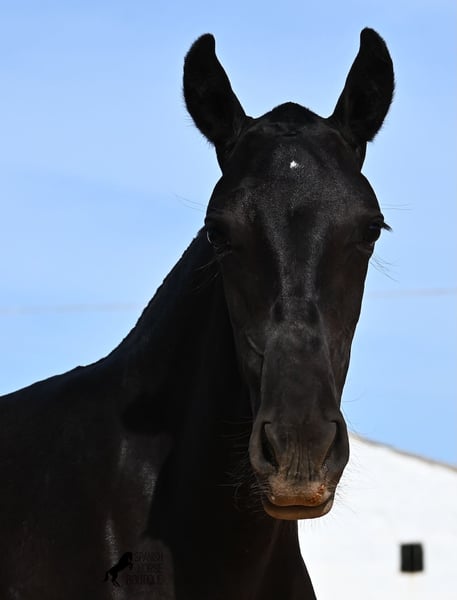Dit in 2025 geboren, volbloed Menorquin merrieveulen heeft een geweldige afstamming, want haar vader was de beste hengst van het ras (beste vererver) en haar opa is een van de slechts 3 elitehengsten van het ras. Ze is met succes gespeend en halstergeleid, nadat ze op zeer grote weidegronden in een kudde met merries van alle leeftijden heeft gestaan. Het terrein is heuvelachtig, met rotsachtige en zeer harde bodems, waar ze bij elk weer altijd buiten zijn. Dit heeft haar niet alleen zeer sociaal en robuust gemaakt, maar ook gezorgd voor een gezonde groei, wat te zien is aan haar heldere benen en goede hoeven. Nu woont ze in de paardenkindertuin, waar ze mag spelen en gedijen, zoals gewenst bij de opfok, om een gezond en sociaal paard te worden. Ze heeft zeer correcte bewegingen en is erg openhartig naar mensen. Haar karakter is zeer rustig en cool, voor een 'muisje' op zo'n jonge leeftijd. Behalve een heel klein, wit vlekje op haar voorhoofd is ze volledig zwart en haar gangen zijn zeer correct, wat haar later tot een veelzijdige merrie zal maken. Haar verwachte eindhoogte zal rond de 162 cm liggen. Video's en afstamming zijn op aanvraag beschikbaar. Haar locatie is Menorca. Graag organiseer ik ter plaatse een veulenkeuring, transport of ook haar reis, mocht u persoonlijk komen kijken. Details hierover zijn te vinden op mijn pagina of in gesprek. Groeten uit Spanje