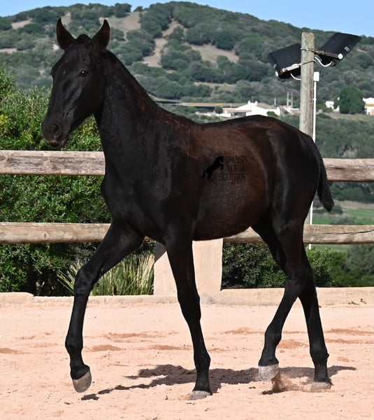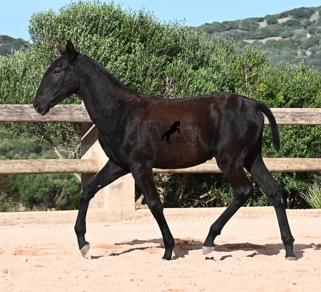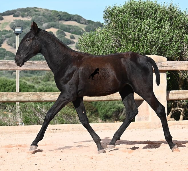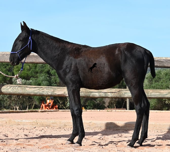 Esta potra pura raza nacida en febrero de 2025, de Menorca, tiene una cabeza muy particular que la hace destacar por encima de su tamaño. Su padre mide impresionantes 1,73 m y es un semental recomendado para la cría debido a sus resultados en competición. Sin duda, ha transmitido ese potencial y esa altura a su hija. Sus largas patas ya muestran que será una gran dama, y las luce con mucha gracia, impulso y elegancia. Sin duda, será atractiva para muchas disciplinas en el futuro. Tiene un carácter encantador. Es muy tranquila y abierta, por lo que seguramente se convertirá en una yegua muy cariñosa. Su día a día transcurre en un poney park, en una crianza totalmente robusta sobre terrenos rocosos y en un clima áspero. Además de jugar con sus compañeras, también realiza actividades básicas de potro y recibe un cuidado muy amoroso. Videos y pedigrí disponibles bajo petición. Su ubicación actual es Menorca. Con gusto puedo organizar una revisión de potros en el lugar, transporte o incluso su viaje, si desea venir personalmente a verla. Para más detalles, puede consultar mi página o contactarme directamente. Saludos desde España