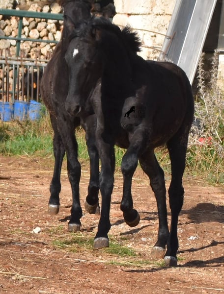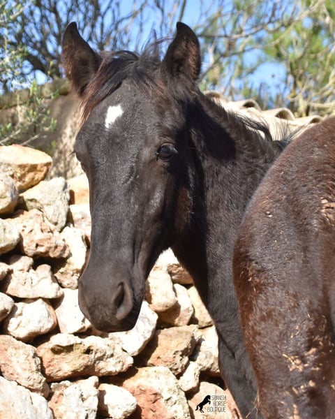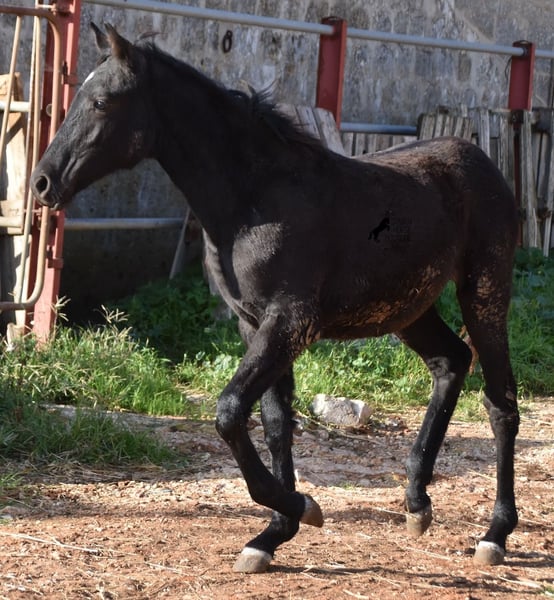 Born in the summer of 2024, this purebred Menorquin mare with full paper is a very cute young lady. She has a shining star and her dad is a multiple award winner for his awards in the local Doma Menorquina. Her paternal grandfather is one of the 3 elite stallions of the breed, with a lot of knee action, which has also come through in her. She is very compact and her expected final height is around 157cm. She is weaned together with her foal friend and is familiar with both the robust stall and the box. She is halter-trained and as her passport has already been issued, she is ready to move to her forever home. For today's steadily increasing price range of the Menorquin, she is also very affordable ;) If you want to get her later, a breeding place can be organized for her. Videos and pedigree on request. Her location is Menorca. I would be happy to organize a foal AKU on site, transport or even your trip, should you come to see her in person. Details can be found on my website or in conversation. Saludos from Spain