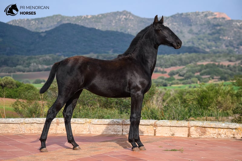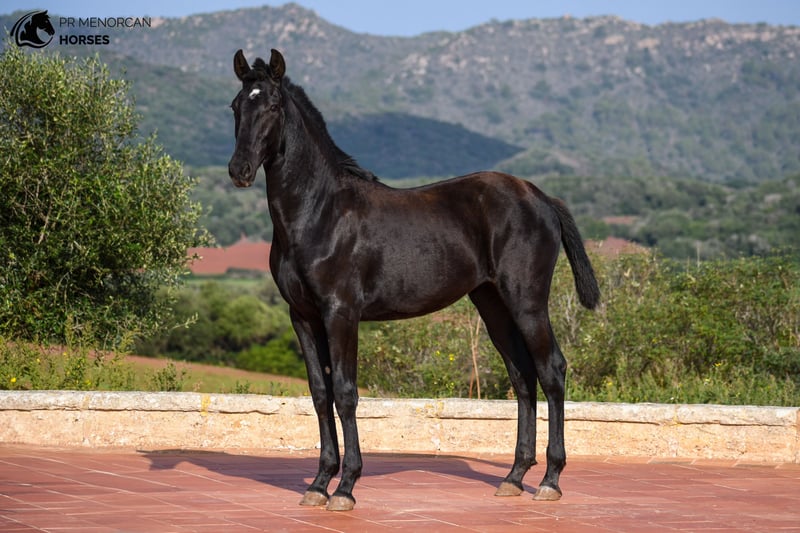 his stunning Purebred Menorcan filly, born in 2024 can now be yours! With an exceptional pedigree, this fully black filly, except for a white star on her forehead, is expected to reach around 162 cm when fully grown. Her sire is a striking stallion with many awards for his morphology, and her grandsire is one of the only three ELITE stallions. On the maternal side, her dam is a sweet mare whose grandsire was also a breed champion. This impressive lineage makes her a highly interesting prospect as a future broodmare. With long, strong legs and graceful movement, this filly has great potential as a dressage project, but she would also excel in eventing, showjumping, or even as a trail partner due to the incredible versatility of Menorcan horses. She is currently learning the basics: halter leading, standing tied, and other fundamental training. She lives in a paddock with other fillies her age, enjoying the freedom to grow, run, and play with her companions but she can also live in a stable. Regularly dewormed. We can organize a vetting and we also handle all documentation and worldwide transport. Contact us for more information and videos! Located in Menorca Cheers!