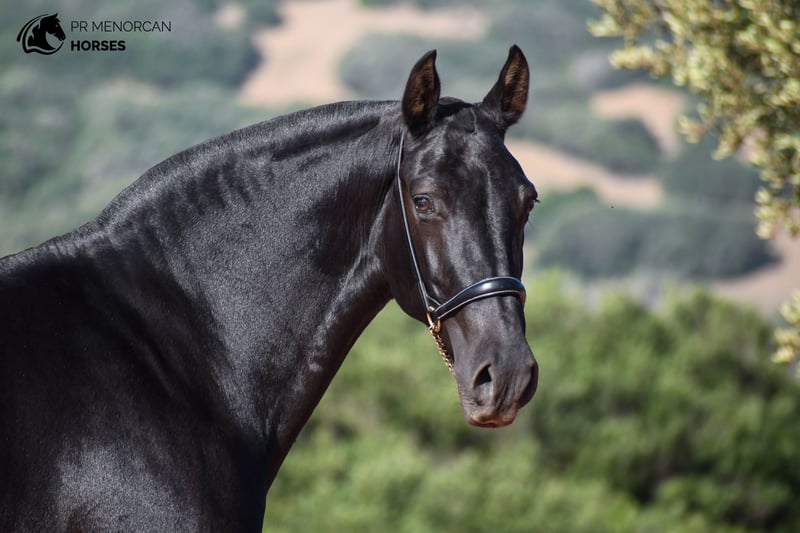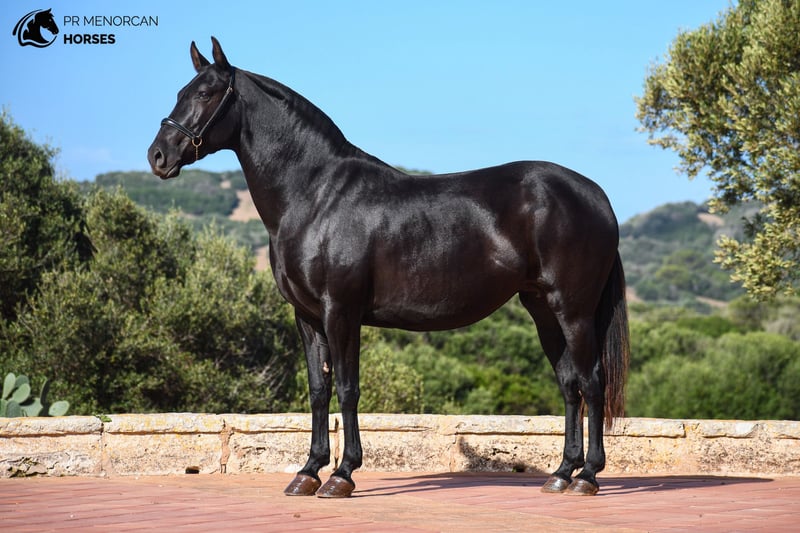 resenting this exceptional 2018 Purebred Menorcan mare, standing at 152 cm with a stunning black coat. In her pedigree, you’ll find breed champion stallions and an especially renowned stallion known for producing award-winning offspring recognized for both morphology and movement. This makes her a compelling choice for a broodmare with excellent genetic potential. She is currently in foal to a magnificent stallion known for his impressive size and has awards in both conformation and movement, promising a well-bred foal with both physical beauty and talent. With a compact and sturdy build, she’s versatile and functional. Beyond breeding, she could excel in various disciplines with some additional training, including dressage, driving, working equitation, or as a reliable trail companion. Menorcan horses are famous for their versatility, and this mare embodies these traits beautifully. This mare is calm, easy to handle. She is halter-trained, lunges well, is great with the farrier, and lives in a paddock with other young mares where she’s well-socialized and has a steady disposition. Regularly dewormed and fully prepared for her new journey. We organize the vetting and handle all necessary documentation and offer worldwide transport. We can do the whole process online if you can't come to Menorca. Contact Us for More Information and Videos Located in Menorca Cheers!
