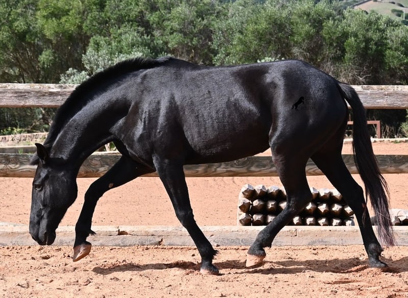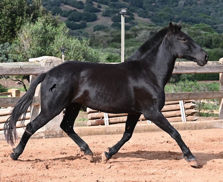 This 2017-born purebred Menorquín mare is in the prime of her life and at the perfect age to explore new paths. She is a licensed breeding mare and has foaled before, demonstrating her qualities as a mother. Currently, she is not in foal, so if desired, she can be started under saddle directly on-site, making her suitable for those who prefer not to train her themselves. Her movement is impressive and she will appeal to many disciplines—both as a riding and driving horse. For those interested in breeding, her pedigree is excellent, as her sire is one of only three elite stallions of the breed, from whom she inherited her very good movement. On her dam’s side, she descends from the original lines of Menorquín horses, known for producing particularly enduring and resilient animals. A classic English training approach can be organized on-site, as well as horsemanship training! She lives on many hectares of land in 24/7 turnout, making her very hardy and sure-footed. With a height of 160 cm and her baroque exterior, she is very harmoniously built and has no white markings. Videos and pedigree details are available upon request. Her location is Menorca. I am happy to arrange a veterinary examination, transportation, or her travel if you wish to view her in person. Further details can be found on my page or discussed directly. Greetings from Spain
