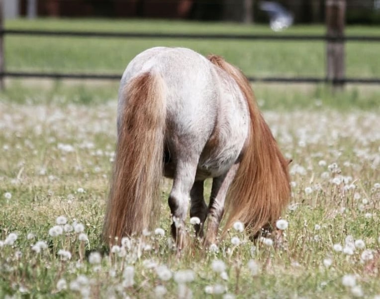 Wir verkaufen sehr schweren Herzens unseren wunderbaren Karlson in die allerbesten Hände. Karlson ist 17 Jahre alt, misst 86cm, ist gut erzogen, ohne Unarten und geritten. Er ist ein Red Roan. Ein Rot-Schimmel, der über das Jahr die Farbe wechselt. Im Frühling wird er für einige Wochen schneeweiß. Karlson ist ein Traumpony, das praktisch alles mitmacht. Bei uns war er auch zu Besuch im Kindergarten, ist Quadrillie mitgelaufen, war mit im See usw… Karlson hat eine Cushing Diagnose, ist aber mit einer halben Tablette täglich sehr gut eingestellt (etwa 24€ pro Monat, einen Vorrat für mehrere Monate werden wir Karlson mitgeben). Auch hatte er schon einmal Rehe. Wenn man ihn aber im Herbst rechtzeitig vom Gras nimmt, kommt er sehr gut zurecht und bleibt das ganze Jahr über Schub- und Symptomfrei. Über den Sommer stand er bei uns problemlos 24/7 mit auf Gras. Beide Erkrankungen sind wirklich unproblematisch und sehr leicht zu händeln. Wir wünschen uns für ihn ein artgerechtes zu Hause mit Shetty-/ Ponygesellschaft. Er ist sehr verträglich, kann aber auch problemlos mal alleine bleiben. Karlson wird nur in die passenden Hände abgegeben. Platz vor Preis! Es bestünde auch die Möglichkeit, dass er in seinem jetzigen, artgerechten Stall mit kleinem Reitplatz in Welver stehenbleiben könnte, wenn das gewünscht wird. Das komplette, umfangreiche Equipment kann günstig übernommen werden. Mit Pass (inkl. kompletter Abstammung), regelmäßig geimpft, entwurmt, beim Zahnarzt und Schmied vorgestellt.