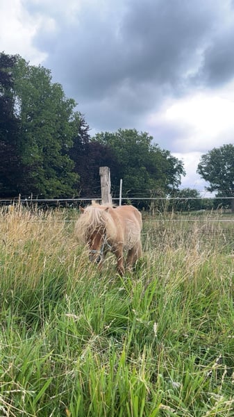 Hier is een vertaling naar het Nederlands: --- Hier verkoop ik een lieve mini ruin die geen ongewenst gedrag vertoont. Hij heeft een prachtige kleur met een aalstreep. Hij is 2 jaar oud en heeft een volle afstamming. Hij wordt verzorgd door twee verzorgmeisjes die hem poetsen en verwennen. Wandelen, knuffelen, hoeven geven en poetsen, alles gaat probleemloos. --- Falls du noch Anpassungen möchtest, lass es mich gerne wissen!