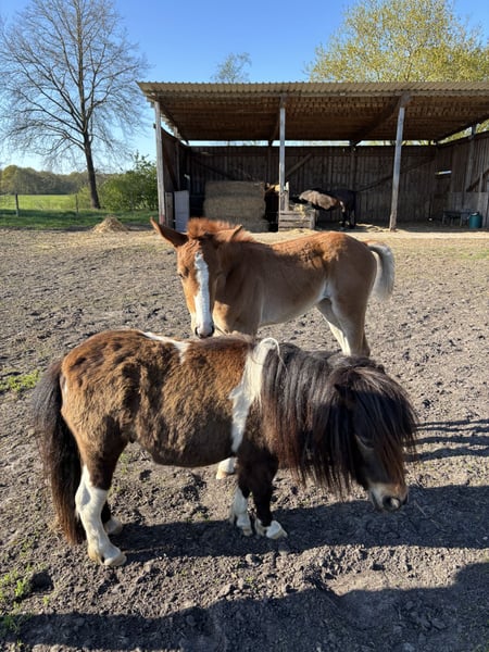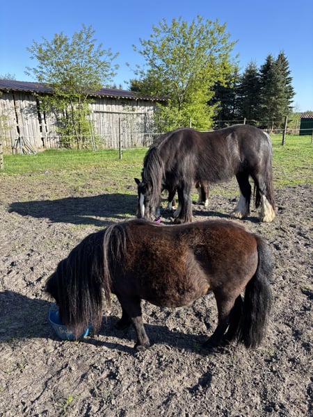 Mini Shettys Zum Verkauf stehen meine entzückenden Mini Shettys, geboren im Jahr 2019 und 2023. Diese charmanten Schettys überzeugen durch ihr freundliches Wesen und ihre kompakte Größe. Mit einem Stockmaß von 89 cm sind sie perfekt für die Freizeitgestaltung geeignet und begeistern sowohl Kinder als auch erfahrene Ponyliebhaber. Die beiden zeigen sich im Umgang äußerst brav und unkompliziert. Auch für Einsteiger bestens geeignet und sie lassen sich problemlos in die Herde integrieren. Unsere beiden MiniShettys brauchen dringend mehr Beschäftigung und Zuspruch. Es handelt sich um Mutter und Sohn, beide jung und momentan nicht im Training. Sie sind beide sehr lieb im Umgang, auch beim Schmied oder Verladen. Beide lieben es geputzt und betüddelt zu werden, aber auch Spaziergänge, Tricks lernen und vor allem Springen stehen hoch im Kurs. Sie hätten bestimmt auch viel Spaß eingefahren zu werden. Beide suchen jemanden, der ihnen die Zeit schenken kann, die sie verdienen. Sie stehen im Moment zusammen im Offenstall mit 24/7 Heu und Weide in einer Shetty-Herde. MiniShettys sind ein echtes Herzstück für alle, die ein zuverlässiges und liebenswertes Freizeitpony suchen. Bei Interesse freuen wir uns auf Ihre Kontaktaufnahme!