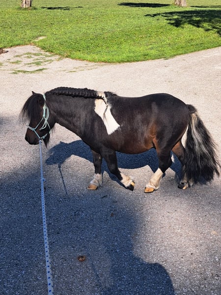 Ich suche für meinen kleinen Hengst, genannt Pauli, einen neuen Bestplatz, da er sich in meiner kleinen Herde nicht so wohl fühlt, wie ich mir dad vorgestellt habe. Er wäre bestens als Beisteller Pony geeignet, für Zirkuslektionen, Kutsche fahren könnte er auch lernen oder als Kinderpony. Natürlich hat er durch seine Abstammung auch Potential als Deckhengst. Besichtigung möglich.