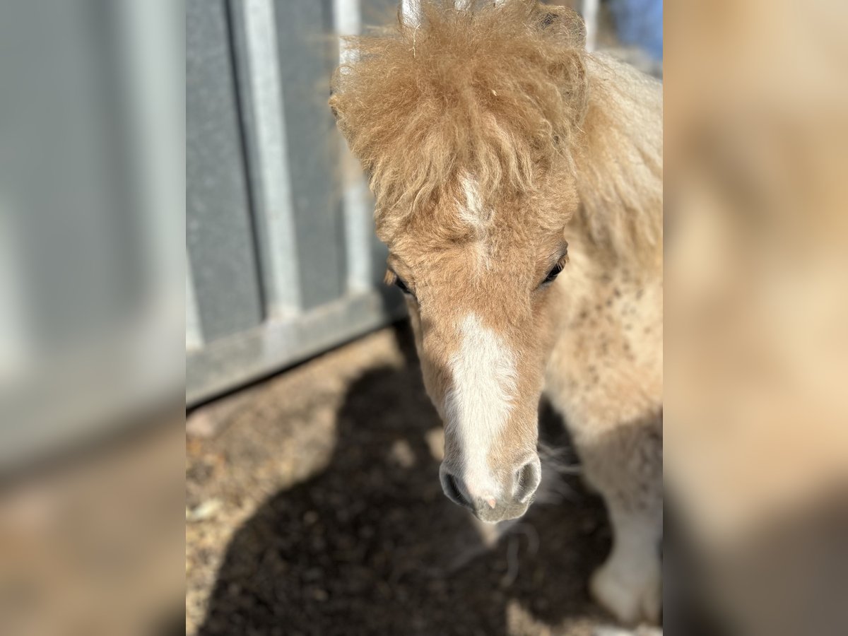 Potro de ponis Minishetland, semental, potro en edad de destete, castaño con marcas blancas