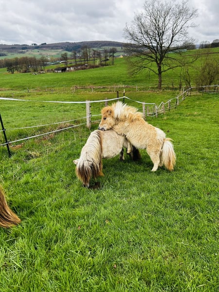 Dürfen wir vorstellen: Feuerfunke vom Voglerhof * 22.7.205 Fuchsfalb Tobiano (red dun) mit Blesse Feuerfunke ist ein im Originaltyp stehender kleiner Hengst, der sich präsentieren kann. Er wächst gut soziaisiert im Herdenverband auf mit Familienanschluss. Wir entwurmen regelmäßig, Schmiedbesuche und zahnärztliche Kontrollen sind für unsere Ponys selbstverständlich. Wir geben den kleinen Mann nur an erfahrene Pferdehände und nicht ,nur‘ als reinen Beisteller ab. Unsere Absetzer bleiben immer mindestens 8 Monate bei ihren Müttern. Eine Besichtigung ist jederzeit möglich. Feuerfunke ist noch bei seiner Mama, könnte aber sofort seine Köfferchen packen. Unsere Preise sind NICHT verhandelbar.