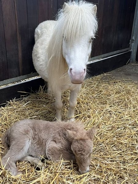 Typvolle Minishettystute in der seltenen Farbe cremello