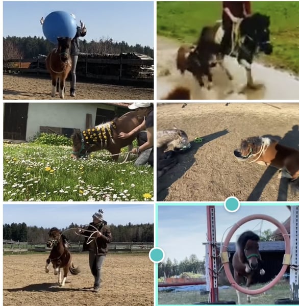 Wegen nicht Zahlung, sucht die kleine doch noch ein neues Zuhause. Aufgrund gesundheitlichen Gründen meinerseits, gebe ich nun die eigene Pferdehaltung auf Deswegen steht meine Minishetty Stute nun zum Verkauf. Lupi ist eine 12 Jahre alte, ca. 0,86m große Minishetty Scheckstute. Seit fast 12 Jahren bei mir. Kennt so ziemlich alles was man mit Pferd machen kann. Sie ist ein totales Zirkuspony. Sie ist eher der gemütliche Typ, kann aber je nach Laune auch schon mal Gas geben. Sie ist 1-&2- spännig gefahren, läuft außerdem vorm Schlitten, kennt Reitplatz abziehen, läuft im Gelände mit als Handpferd. Auch am Fahrrad läuft sie super mit. Kennt natürlich langzügel Arbeit überall & lässt sich auch brav longieren. Freispringen & oder an der Hand macht sie auch super. Sie springt super gerne u sehr gut. Einspännig vorm Sulky oder Kutsche läuft sie nicht gerne. Deswegen habe ich sie seit ein paar Jahren nicht mehr angespannt. Sie läuft aber jedes Jahr vorm Schlitten im Winter & hat auch bis vor kurzem immer den Platz abgezogen. Freiarbeit u Zirzensik macht sie super gerne. Sie kann einige Tricks wie steigen, ablegen auf jedem Untergrund & überall, springt Capriole, Dreh dich, smile, Zirkeln, rückwärts frei folgen, einparken, spanischen Gruß & Schritt, Nein sagen, Kompliment, Bergziege, Podestarbeit in allen Varianten & Piaffe ist angefangen. Ebenfalls kennt sie alles an Gelassenheitstraining, Shootings mit Nebelmaschine, Fackeln Kostümen, Flügeln etc. Bemalen mit Fingerfarben & steht super artig beim putzen. War schon auf sämtlichen Umritten mit dabei, auf Gelassenheitsprüfungen ( Note 1) Ausflüge zu Gewässern, Burgen usw. Natürlich Schmiede u Verladefromm. Läuft Barhuf. Sie kennt Box u Offenstallhaltung, steht im Offenstall u ist verträglich mit alles u jedem. Bleibt auch problemlos alleine. Lupi ist sehr leicht zu händeln aber ist einfach eine ministute (Diva) die immer wieder mal klare Ansagen braucht. Sonst macht sie i-wann was sie will & würde mit Sicherheit auch zwicken. Sie ist super leicht & einfach zu händeln. Sie ist nicht geritten! Equitenpass natürlich vorhanden. War regelmäßig beim Schmied & wurde entwurmt. Tetanus geimpft ebenfalls. Sie ist gesund & munter, keine Rehe oder Ekzem! Auch ist sie E-Zaun sicher. Jedes Jahr vorsichtig angegrast worden & war stundenweise auf dem Gras. Einen großen Teil des Zubehörs gebe ich mit dazu! Weiteres Zubehör kann separat erworben werden. Videos habe ich & können bei ernsthaften Interesse natürlich gesendet werden. Anschauen ist jederzeit nach Absprache möglich! Da es sich hierbei um ein Lebewesen handelt, sind dies lediglich subjektive Eindrücke von mir und keine zugesicherten Eigenschaften des Pferdes. Privatverkauf!