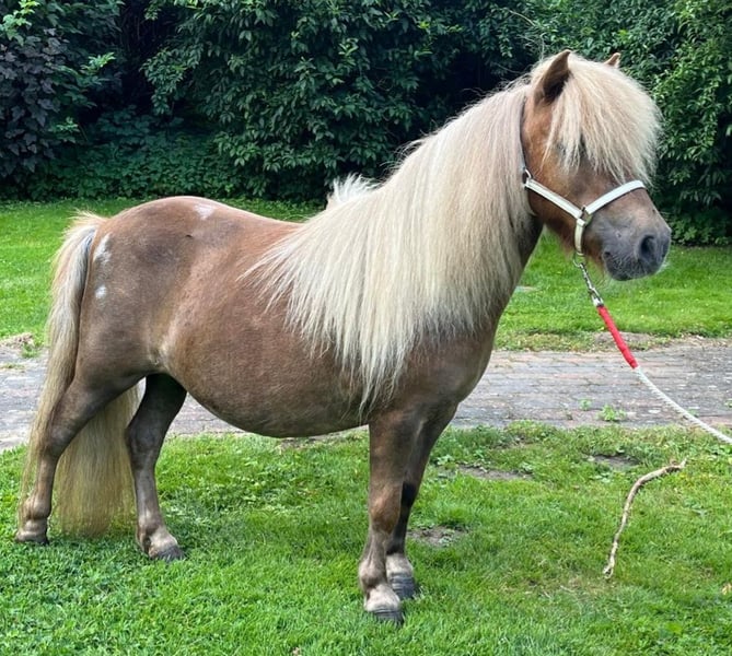 Wir müssen uns aus persönlichen Gründen von unserer Mini Shetty Herde trennen. Es stehen bildschöne / tragende oder nicht tragende Mini Shettys. zum Verkauf. Sie haben alle einen netten Charakter, sind E-Zaun sicher und sind Kinder gewöhnt. Geritten wurden sie bei uns nicht. Alle Ponys haben ein TOP Pedigree und sind alle mit Stammbaum / ggf. Zuchtbucheintrag. 1. Heidi Palomino Stute, geb. 2014 tragend / 1900,00 2. Gonnie Palomino Stute, geb. 2013 1500,00 3. Chanel braune Stute, geb. 2009 1500,00 4. Nadiya Fuchsstute, geb. 2019 1500,00 5. Lidwien Palomino-Fabiano, geb. 2017 tragend / 2500,00 6. Ebony Rappschecke, geb. 2011 tragend / 2500,00 7. Fantasie Rappschecke, geb. 2012 1500,00 8. Impression Fuchs, geb. 2015 1500,00 9. Nonneke Mushroom, geb. 2019 4500,00 9. Confetti Splashed White Fuchs, geb 2018 (rein englisch gezogen) tragend / 4500,00 10. Katylina Mushroom - Tabiono, geb. 2024 11. Lilly Schimmel, geb. 2010 1500,00 Abstammungen von den einzelnen kann gerne nach Anfrage gesendet werden.