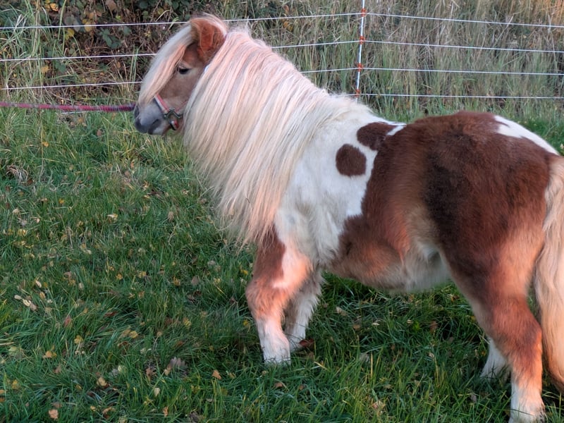 Mini-Shetty-Stute, 7 Jahre alt, Fuchsschecke mit toller Mähne, abzugeben. Die Stute hat vollständige Papiere. Das Pony ist sehr kinderlieb, immer ruhig und lässt sich problemlos auch an belebten Straßen führen. Reiten und Führen durch kleine Kinder (bei uns zwischen drei und sechs Jahren) ebenfalls problemlos möglich Nicht schreckhaft! Ehrlich! Schmiede- und Verladefromm! Nähere Informationen gerne unter 01639859069. Schauen Sie auch unsere andere Anzeige: Mini-Shetty-Stute Fuchs, 14 Jahre alt.