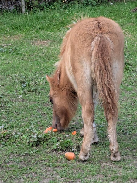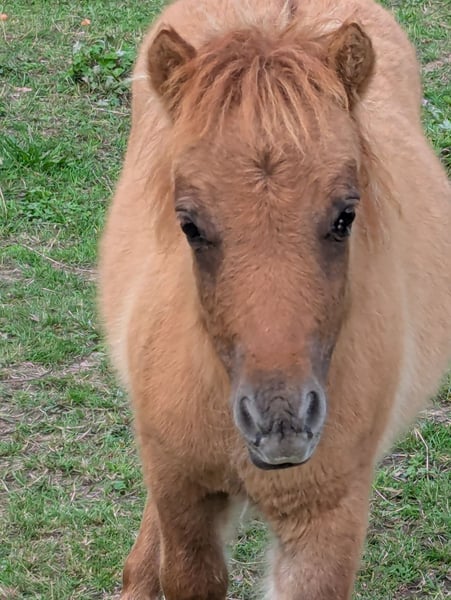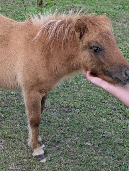 **Sales Advertisement: Mini Shetland Pony Mare** For sale is a charming Mini Shetland Pony mare, born in 2025. This little beauty stands at approximately 84 cm. She comes from a responsible breeding and is characterized by her friendly and curious nature. Ideal for children or as a loving companion for the whole family.