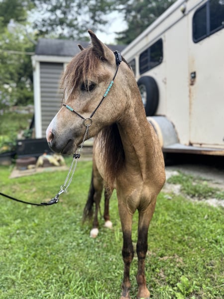 Selling my buckskin roan pony Stands at 39” tall Was gelded on April 10th Up to date on all vaccines and has a negative coggins. Started under cart. Has been shown in halter and did fabulous. Great with other horses, dogs Easy keeper Good for farrier Clips well Loads and hauls great no funny business.