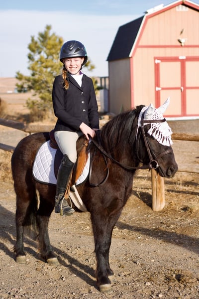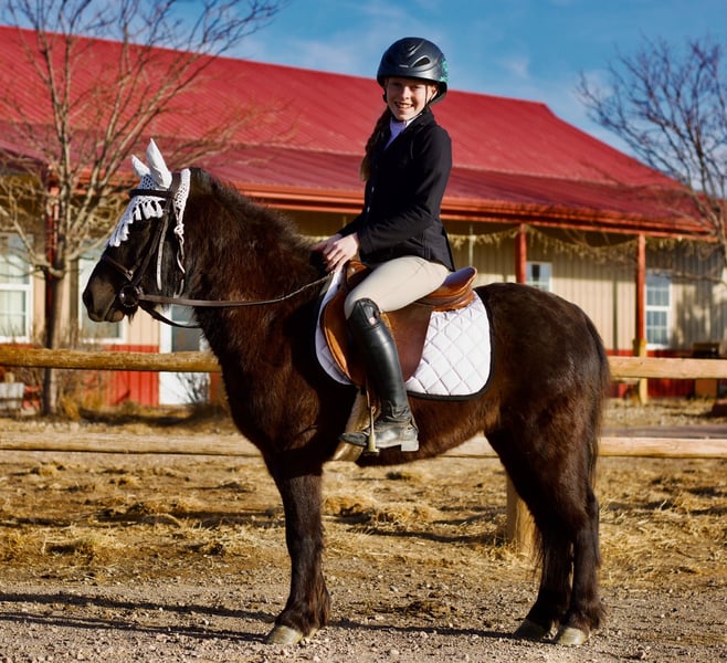 Con una altura de 11.3 manos y solo 3 años, este poni ya está entrenado.