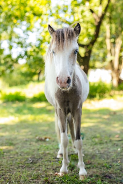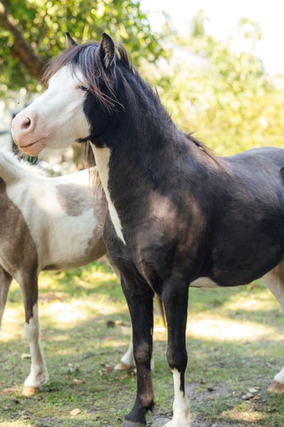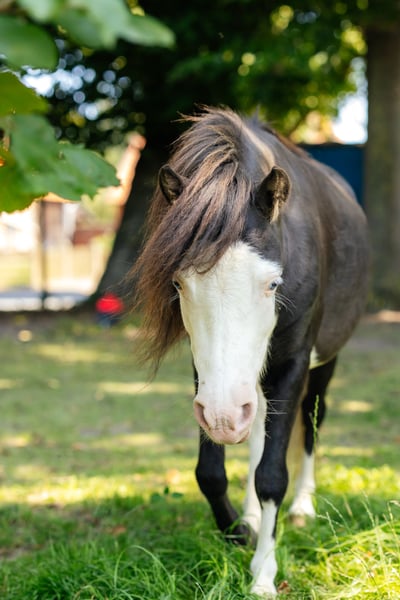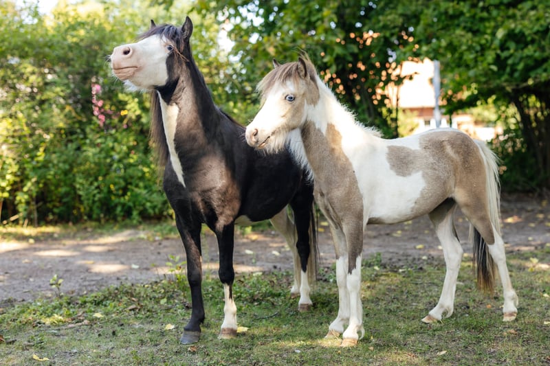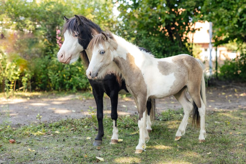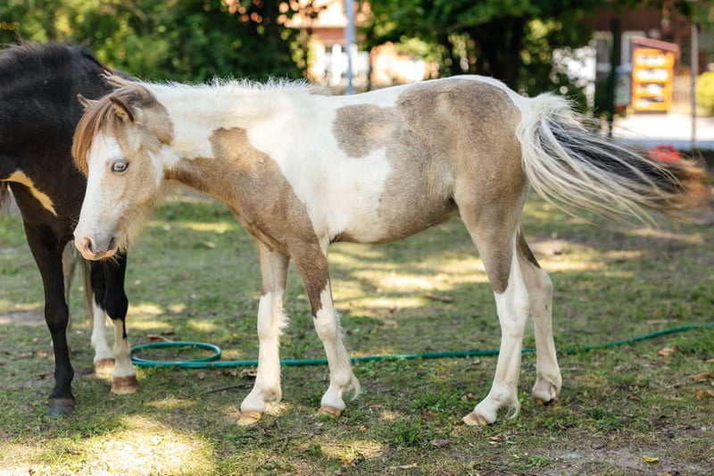 Hier steht ein Traumhaft schönes Duo American Miniature Horse Burschen zum verkauf. Beide stehen seit einem Jahr zusammen und verstehen sich sehr gut. Shadow 4 Jahre, Smokey Black reinerbig Splashed White 92cm groß ein absoluter Traumkerl, wir haben ihn uns als Neugeborenes von seiner Züchterin gekauft als zukünftigen Deckhengst. Leider sind seine Hoden nicht abgestiegen, eigentlich wollten wir noch ein weiteres Jahr warten, da bei einer Züchterfreundin auch schon mal erst mit 5 Jahren die Hoden bei einem Hengst abgestiegen sind, nur leider wird das Thema Wolf bei uns immer präsenter und wir lösen unsere Hengstgruppe auf deshalb. Der Preis ist für beide Pferde zusammen und auch nur so niedrig weil die Hoden nicht abgestiegen sind. Shadow ist dem Menschen sehr zugetan, er kommt sofort wiehernt angelaufen wenn er einen sieht und freut sich was mit einem zu machen. Er geht gerne spazieren und ist sehr lernbegierig. Er hat ordentlich Power und wir könnten ihn uns auch gut vor der Kutsche vorstellen. Er hat das AMHA und AMHR Papier. Zusammen mit Shadow zieht sein Kumpel Obi-Wan Kenobi aus, Obi-Wan ist im Juni 2024 bei uns geboren, akuell ca 82cm, er ist ein sehr eleganter feingliedriger Buckskin Tovero LWO+ und hat wie Shadow zwei strahlend Blaue Augen. Er kennt alles was man in seinem alter kennen muss, ist Halfterführig und liebt das spazierengehen mit seinem Kumpel. Obi-Wan hat volles AMHA Papier, beide Hengste sind ACAN Negativ. Der Schritt sich vorallen von Shadow zu trennen ist ein vernumpft Schritt, denn er braucht Menschen die mit ihm Arbeiten, da hat er viel Freude dran. Nur in 5 Sterne zuhause. Bei Fragen gerne Fragen, es können mehr Fotos und Videos gesendet werden, auch können die 2 natürlich bei uns besichtigt werden. Wer Eyecatcher kommt an diesem Duo nicht vorbei.