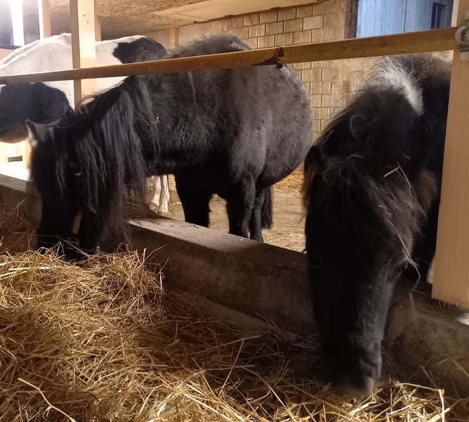 Schweren Herzens verkaufen wir unsere schöne 6-jährige, schwarze, reinrassige American-Mini-Horse-Stute "Surprise" (Stockmass 95cm), sehr lieb im Umgang, an Kinder gewöhnt, gefahren (Sulky Trabrennen), guter Charakter, verladefromm u. gelände-/verkehrssicher, robust & gesund, geimpft, gechippt und entwurmt, Hufe gemacht. Surprise ist an Freilauf- und Gruppenhaltung gewohnt mit anderen Ponys und Kleinpferden. Sie hat zurzeit auch noch ein abgesetztes Hengst-Fohlen (geb. 2024), das auch zu verkaufen ist. Die beiden werden einzeln oder zusammen an einen schönen Platz abgegeben, wo sie gefordert und gefördert werden sowie ein artgerechtes Leben in Freilauf- und Gruppenhaltung geniessen dürfen. Verkaufspreis für die Stute 3200.- SFr. Verkaufspreis für das Hengstfohlen 1500.- SFr. Verkaufspreis beide zusammen 4500.- SFr. Gerne können die zwei Ponys in Gettnau LU besucht werden.