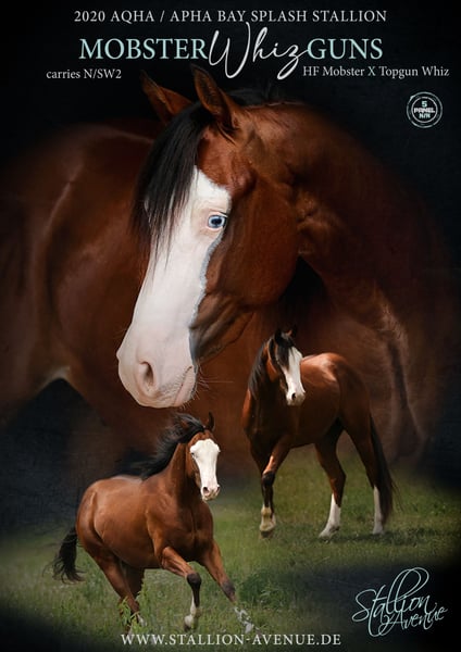 Our MOBSTER WHIZ GUNS aka Guni impresses with a truly stunning character and his typical mobster nature. A big dog in the shape of a horse: friendly, affectionate and intelligent with great movements and a solid conformation. 6 panel N/N and SW2 carrier. Core healthy and strong bones and hooves! We are delighted to be able to offer our stallion, who has lived with us since his foaling days, to the mare world.