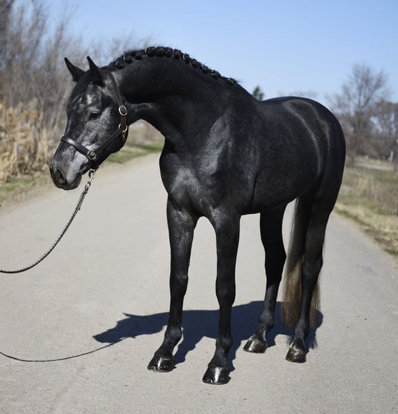 Beautiful four-year-old Holsteiner stallion. Sire: Crack, Cornet Obolensky; maternal lineage includes Galrado. Very easy to ride and exceptionally talented in show jumping. Also well-suited for a young rider.