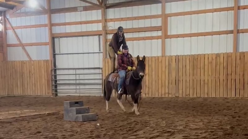 ♦️𝐍𝐄𝐖 𝐘𝐄𝐀𝐑'𝐒 𝑬𝒙𝒕𝒓𝒂𝒗𝒂𝒈𝒂𝒏𝒛𝒂♦️ Happening now thru MONDAY | JANUARY 12th - Available EXCLUSIVELY on HorseBid's website! For more details and to register visit: www.Horsebid.com CONSIGNOR CONTACT: Rafter D Mules 651-303-7056 LOCATION: Hastings, MN BREED: Mule REGISTERED: No REGISTERED NAME: Bourbon COLOR: Grullo Paint HEIGHT: 14 AGE: 11 GENDER: John Mule Bourbon is the type of mule that every family needs. If you can hold the reins, you can ride him. He is as honest as the day is long. Above all, Bourbon is gentle and safe, he has absolutely earned our trust. He suits any rider, from beginner to advanced and everything in between. Bourbon is 11 years old, and the perfect age for a seasoned trail mount. He is absolutely safe and has more experience out on the trails than Lewis & Clark. At 14h he is easy to get on, but he will also stand at a mounting block or log to be mounted. Bourbon will walk, trot, and lope in both leads correctly. He rides under saddle as well as bareback, with a bit or a war bridle. He is a trooper when it comes to our obstacles and horseplay, amicably allowing us to be entertained whether riding double or playing with the ball! He is a mature John mule that is put together as nicely as you could ask for, and his chrome is the cherry on top. Bourbon is like the whiskey he is named after; he just keeps getting better with time. Bourbon will cross downed timber, water, and anything you could imagine finding out on the trails. He is used to small pets, wildlife, and all types of weather. He has been on many overnight camping trips. He rides quietly inside and outside. Bourbon loads and hauls well and has even been hauled in a slant load trailer. He gets along with other pasture mates, is easy to catch, bridles easily, stands quietly to be clipped, and is a gentleman when having his feet and ears handled. Bourbon is truly the mule that will get along with any level or age of rider. Anyone! He has a kind eye, and a sweet disposition. If you would like to meet Bourbon or have any questions prior to the auction ending, please contact Dillon at 651-303-7056.