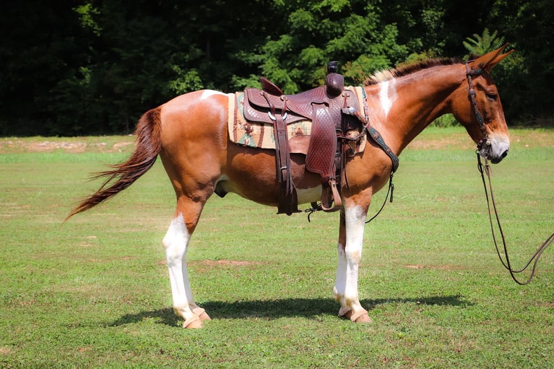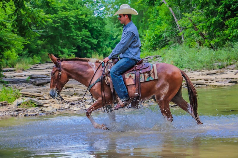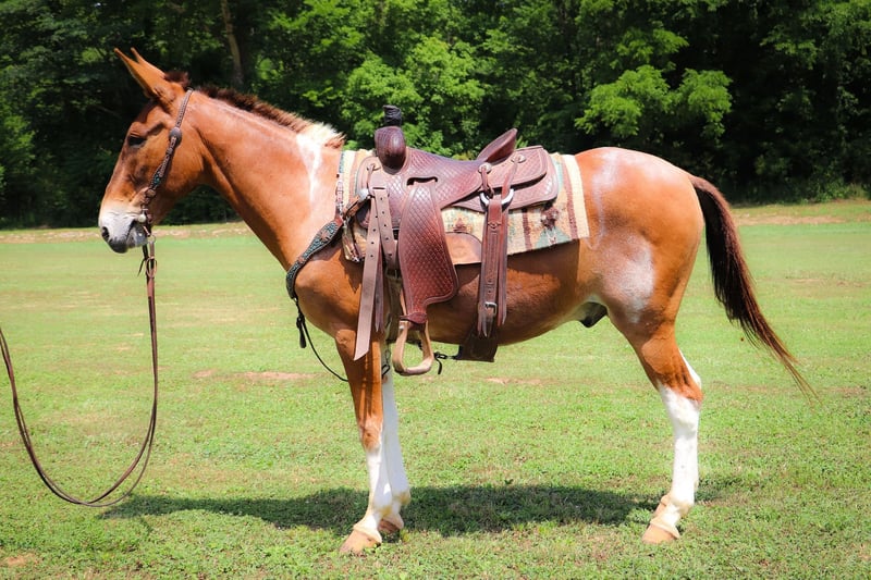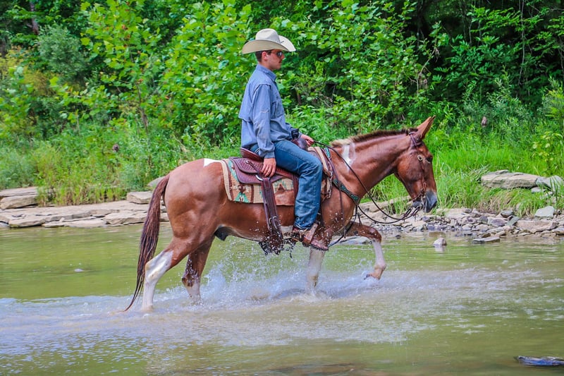 ONLINE AUCTION Place your bids at www.PlatinumEquineAuction.com Starting Bid $3500 Auction ends July 14th, 2024 Need a new saddle? Check out White Rock Saddles on our website or Facebook! This is “Daniel”, a true one of a kind RED DUN & WHITE JOHN MULE that is well trained, gentle, and civilized. This mule is 11 years old and stands 14.2 hands tall. He has a very large resume and has been there and done that. He has been ridden English and Western. He has been to the open shows and shown by a novice rider. He will collect up nicely and slow jog or he will move out into an extended trot. He is soft in the bridle and will break at the poll. He has been used for ranch work in the pasture sorting and pushing cattle by an older gentleman. He has been on the moonlit rides and is sure footed in rough country. He has been shot off of and used for hunting in the mountains. He has also been used to lead a pack string. He has an extremely comfy and easy to sit canter. He catches his leads, lopes circles, and stops nicely. He will back up, move off of leg cues, and he has a true one hand neck rein. He stands to mount, tack, and groom. He picks up all four feet and handles his ears with no issues. He takes his time in unsure footing, unloads in new territory and rides off quiet, and has no buck and no hump. This mule loads, bathes, hauls, and has the best ground manners. He rides out alone with confidence and will bring up the rear or lead the pack. He is traffic safe, good with dogs, and will go anywhere you point him without hesitation. He will ride bareback, double, and in just a halter and leadrope. Don’t miss out if you want a mule that will make you look like a mule skinner even if you aren’t. He’s obedient, kind, personable, and loves to trail ride. Contact HR Horses Erin 304-238-4155 with any questions or to set up a time to come see him in Flemingsburg, KY. BIN offers are considered. Thanks! ONLINE AUCTION Place your bids at www.PlatinumEquineAuction.com Starting Bid $3500 Auction ends July 14th, 2024 Need a new saddle? Check out White Rock Saddles on our website or Facebook!
