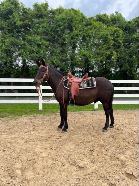 ONLINE AUCTION Place your bids at www.PlatinumEquineAuction.com Starting Bid $3500 Auction ends July 7th, 2024 Need a new saddle? Check out White Rock Saddles on our website or Facebook! Meet Cash! Cash is an 11 year old, 14.1H, beautiful John mule. He is great with his ears, stands tied quietly, and saddles like a gentleman. He has solid barefoot feet, and the farrier was just out this week. Cash will walk, trot, and canter both directions, but he really shines out on the trails. He is not afraid of traffic, semis, 4-wheeler, side by sides, or tractors, and he crosses water like a champ. He will go out on the trail by himself or with a group. Cash is a sound, and no maintenance, stunning mule. He is up to date on his shots, and ready for a new trail partner! For more info contact Elizabeth Ellett 618-792-0871 Located in Freeburg, IL. ONLINE AUCTION Place your bids at www.PlatinumEquineAuction.com Starting Bid $3500 Auction ends July 7th, 2024 Need a new saddle? Check out White Rock Saddles on our website or Facebook!