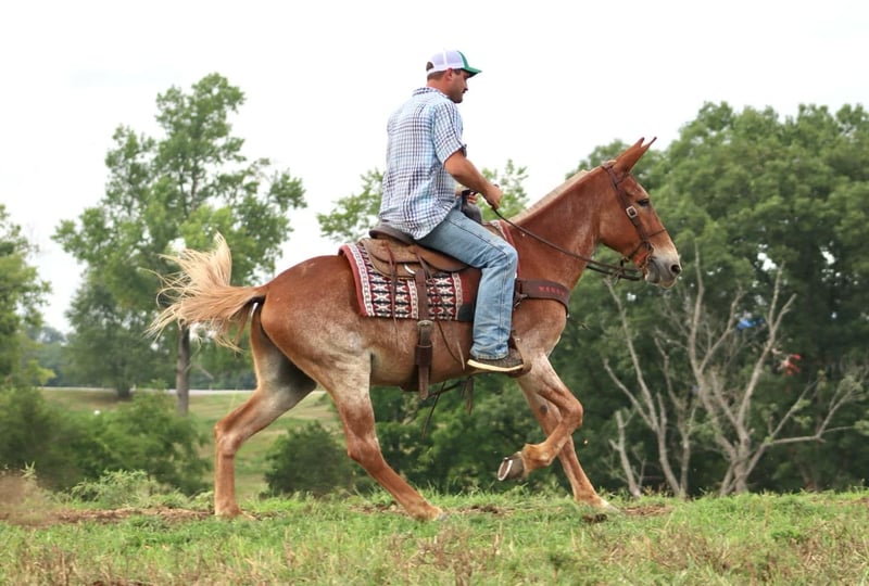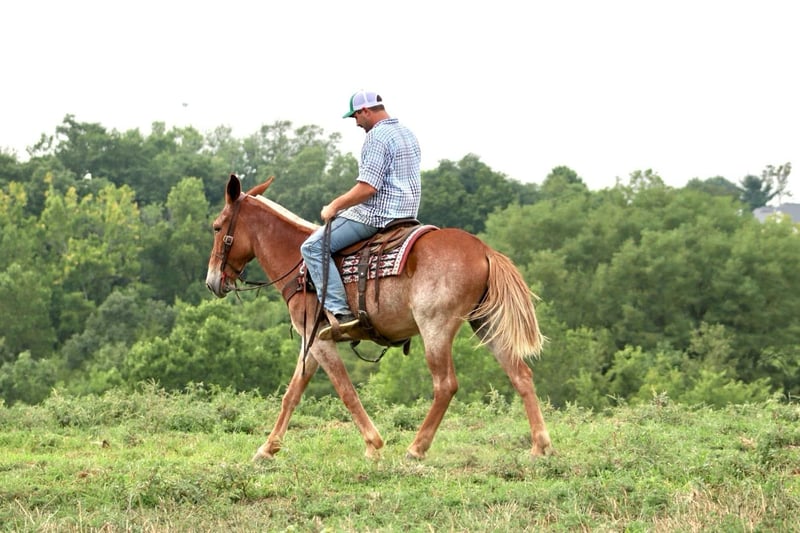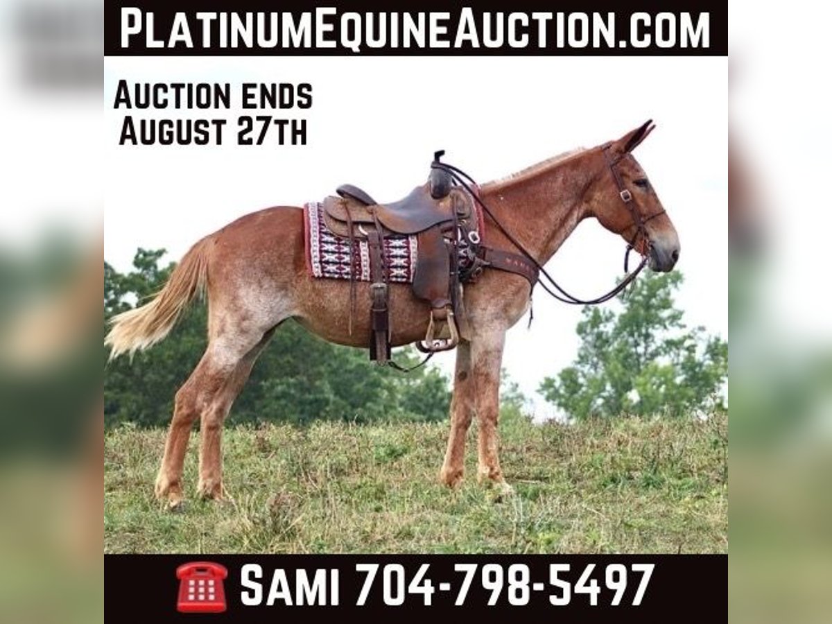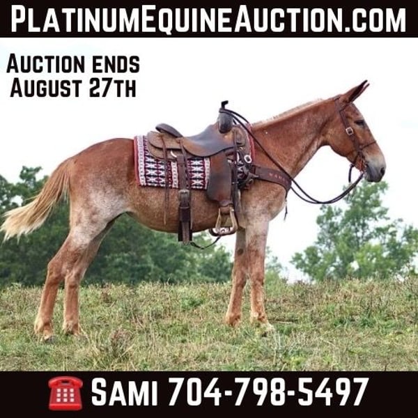 ONLINE AUCTION Place your bids at www.PlatinumEquineAuction.com Starting Bid $3500 Auction ends August 25th, 2024 Need a new saddle? Check out White Rock Saddles on our website or Facebook! Cleo is a 12 year old, 15.1 hand Molly mule. Her pretty sorrel roan color is eye catching. Cleo is a big, sweet Molly mule that is safe. She has countless miles of experience on the trails. She is happy to ride down the trail on a loose rein or you can take her on more extreme and technical trail and she will navigate it with confidence. Cleo is out of a TWH mare and has a nice ground covering walk. She will also lope off with ease. She crosses natural obstacles and terrain with ease. She will ride out alone or with a group. She is happy to ride anywhere in the group, whether it’s leading, middle, or back. In addition to being a very nice riding mule, Cleo also drives. She has driven single and double. She has been on numerous wagon rides and parades. She is traffic safe both undersaddle and in the harness. Cleo stands nicely to tack up. She hauls well and gets along well in group turnout. She does well on overnight camping trips and ties out on the high line. She is ready to head out to the fall trail rides or up in the mountains hunting! We have left her turned out for several weeks at a time, and she rides off quietly when you catch her up to ride again. She handles her ears well, picks up all four feet, and is good to clip. Don’t miss out on a good, honest mule! For more information call Sammi Waugh 704-798-5497 Located in Brooksville, KY. ONLINE AUCTION Place your bids at www.PlatinumEquineAuction.com Starting Bid $3500 Auction ends August 25th, 2024 Need a new saddle? Check out White Rock Saddles on our website or Facebook!