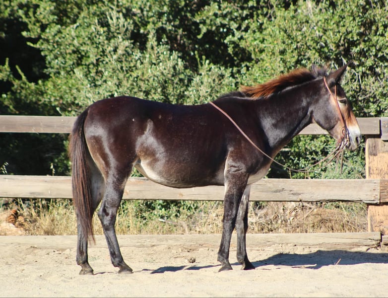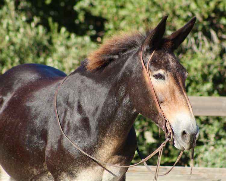 ONLINE AUCTION Place your bids at www.PlatinumEquineAuction.com Starting Bid $3500 Auction ends September 8th, 2024 Need a new saddle? Check out White Rock Saddles on our website or Facebook! Birdie is a doll faced brown Molly mule standing 14.2 HH. Birdie is the epitome of safe! This sweet little mule is the prime age of 12 years old and has seen more miles than your Chevy pick up! Birdie has been used on a dude string in the high sierras and has packed everyone from beginners to grandmas! She is used to crossing squeaky bridges, rushing water, and never blinks an eye at critters out in nature! Birdie is as sweet as can be and loves attention. You can catch her in a 50 acre lot just as easy as a box stall! She has no “mareish” attitude and gets along with most every horse or animal she’s been out with. She doesn’t mind you touching her ears, face or all over her legs and body! She has great feet, doesn’t require shoes, and picks them all up with no issues. Absolutely no kicking, spooking, or funny business ever! She will stand quietly at the hitching post while being saddled and loads up in any trailer effortlessly. Birdie can sit for days, or months and never change her sweet demeanor. In the arena she is just as calm and relaxed as she is put on trail. She is a slower paced mule but will lope nicely both ways and has a great stop! She neck reins lightly and responses to ques softly. We have rode her all over the city streets, down beaches, and you will never get her to bock at anything. She has been exposed to practically everything and truly is safe for anyone! For more info please contact Cheyenne at 831-537-8746. She is located in Bitterwater, CA. ONLINE AUCTION Place your bids at www.PlatinumEquineAuction.com Starting Bid $3500 Auction ends September 8th, 2024 Need a new saddle? Check out White Rock Saddles on our website or Facebook!