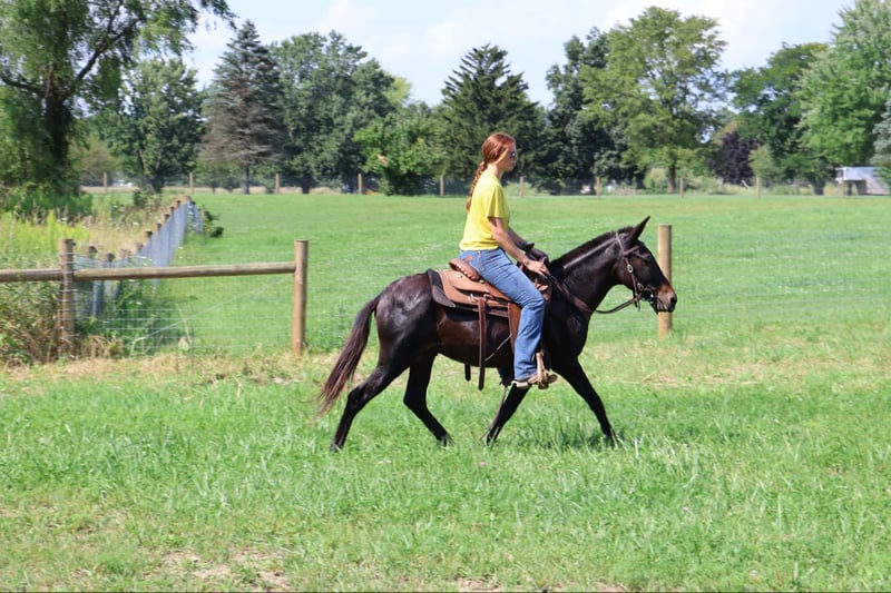 ONLINE AUCTION Place your bids at www.PlatinumEquineAuction.com Starting Bid $3500 Auction ends August 25th, 2024 Need a new saddle? Check out White Rock Saddles on our website or Facebook! Proudly offering Moscow Mule for sale. Here’s a John mule everybody can ride, handle on the ground, and love! Moscow is 13 years old and 13.1hh. He’s at that perfect middle age and just the right height for both kids and adults to enjoy! Moscow rides both English and Western. This boy has excellent brakes and rides around in a snaffle, curb, or halter and lead rope. He has been started over fences and jumps around a hunter course willingly. This summer Moscow was used in our summer horse camp. Kids from 4-year-old newbies to experienced young teens were riding him! Moscow has been on countless of trail rides, climbed the steep Rocky Mountains, and has swam through the Kensington kayak river. He has even been ridden thru our local drive-thru for ice cream! He’s a point-and-shoot type of guy. He’s a very trustworthy and willing partner! There is not one bad thing I could say about this wonderful mule! Mules like Moscow are rare and hard to find! Enjoy the video, you will see Moscow in a variety of environments with a wide array of riders. Located in Howell MI 48855. Call or text Ellesse Schwartz 248-390-6831 for more info. ONLINE AUCTION Place your bids at www.PlatinumEquineAuction.com Starting Bid $3500 Auction ends August 25th, 2024 Need a new saddle? Check out White Rock Saddles on our website or Facebook!