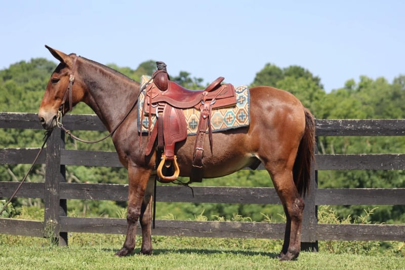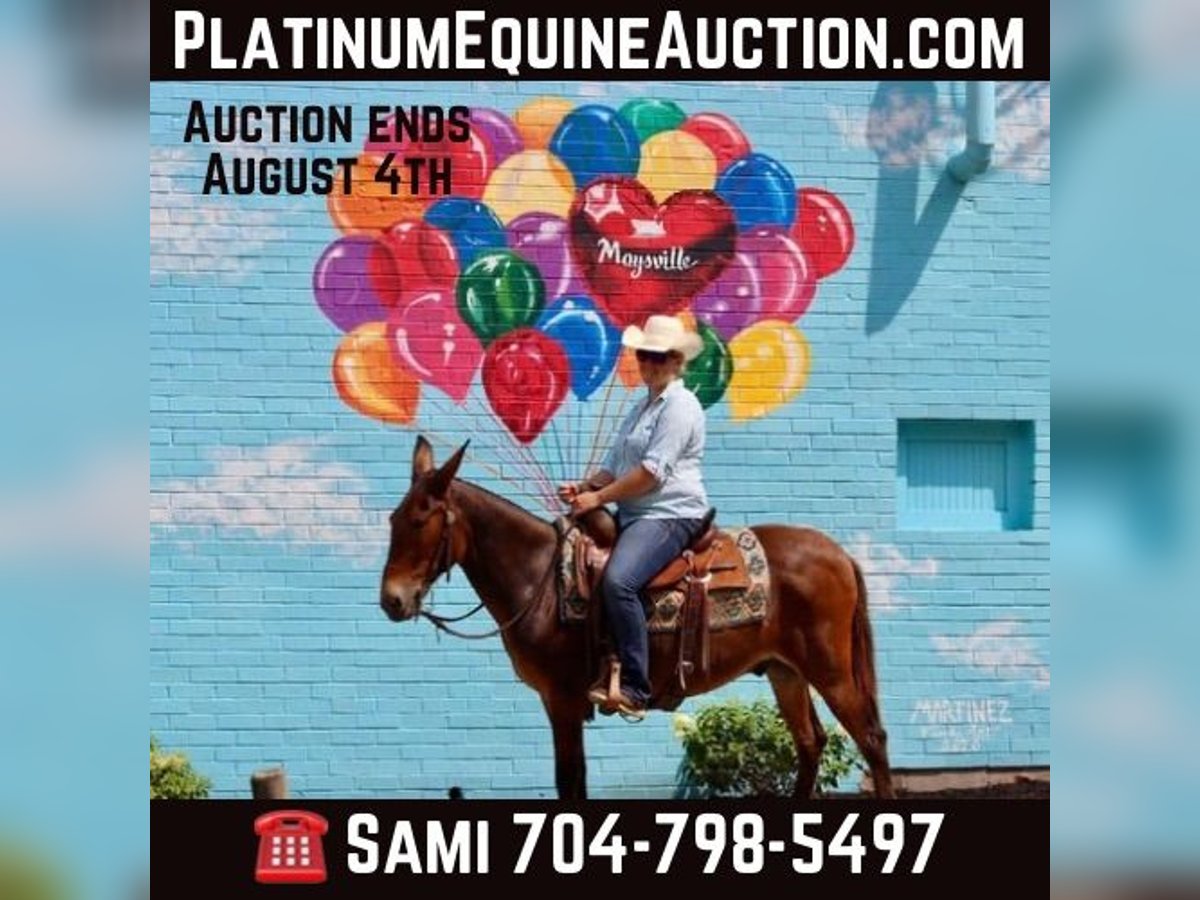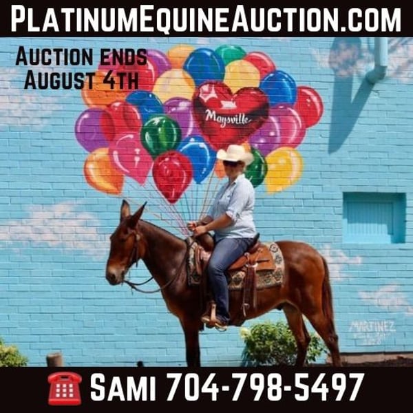 ONLINE AUCTION Place your bids at www.PlatinumEquineAuction.com Starting Bid $3500 Auction ends August 4th, 2024 Need a new saddle? Check out White Rock Saddles on our website or Facebook! Cletus is a 14 hand, 13 year old John mule. Cletus is quiet, safe, gentle and stays that way even with time off. He is excellent on the trails. He will ride out alone or with a group. He will also easily leave the group if you want. His favorite gaits are walk and trot, but he will lope as well. He rides one handed. Cletus will cross all natural obstacles with ease. Cletus is traffic safe. He has been ridden down the road and in town with no issues. He has had all levels of riders on him and he does well with all. He enjoys doing obstacles in the arena. He also takes excellent care of the littles. Our year old has ridden him independently in the arena. Cletus is very patient as he is learning to steer, stop, back, and go over obstacles. He stands well for grooming and to tack up. He has a friendly personality. He gets along well in the pasture with others and travels well. Cletus is just a very nice, all around mule to trust and have fun with! For more info, please contact Sammi Waugh 704-798-5497. ONLINE AUCTION Place your bids at www.PlatinumEquineAuction.com Starting Bid $3500 Auction ends August 4th, 2024 Need a new saddle? Check out White Rock Saddles on our website or Facebook!