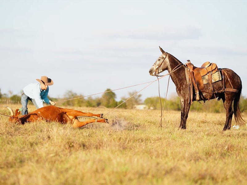 ⚜️ Das Horseman's Showcase ⚜️ Findet jetzt bis MONTAG, 1. DEZEMBER, statt – exklusiv auf der Website von HorseBid! Für weitere Details und zur Anmeldung besuchen Sie bitte: www.Horsebid.com VERKÄUFERKONTAKT: Angstman Performance Horses & Mules 515-408-7184 STANDORT: Huntsville, TX RASSE: Maultier EINGETRAGEN: Nein FARBE: Blau-Grau HÖHE: 14,2 hh ALTER: 3 Jahre GESCHLECHT: Hengstmaul Bullfrog ist ein hübscher 3-jähriger Hengstmaul mit einer Größe von 14,2 hh. Dieser charmante junge Maultier stammt von einer Quarter Horse-Stute und einem Mammut-Jack ab. Er hat einen kraftvollen Schritt, der Sie überall hintragen wird! Bullfrog wurde draußen auf der Ranch eingesetzt und kennt harte Arbeit! Wir haben mit ihm Rinder roden und behandeln, im Offenstall mit Team-Roping begonnen, er hat Trailritte im Wald absolviert, Packtiere geführt, Baumstämme gezogen und Bäche überquert. Er kann die Gruppe anführen oder einfach mitlaufen. Ob im Roundpen oder auf der Weide – Bullfrog zeigt schöne, runde Trab- und Galoppbewegungen auf losem Zügel. Er kann einhändig geritten werden, sich wie ein Pferd wenden, Seitwärtsgehen, Tore öffnen und den ganzen Tag unterwegs sein. Am Boden ist Bullfrog ruhig und umgänglich, er ist gut mit seinen Hufen und Ohren. Er braucht eine Weile, um sich an neue Menschen zu gewöhnen, und ist noch nicht für Anfänger geeignet. Er ist ein vielversprechender junger Maultier, der bereits viele Kilometer hinter sich hat. Mit mehr Zeit und Reife wird er ein großartiges Maultier sein, um viele Jahre Freude daran zu haben!