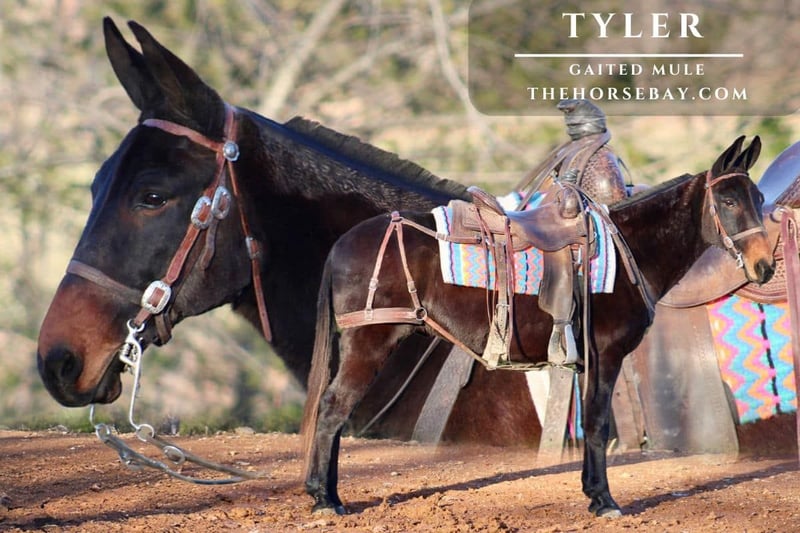 Tyler is an outstanding John Mule, a solid 14.3 hh, built to last a lifetime. Tyler isn’t your ordinary mule; this dude knows how to move, and he’s smooth as silk! Tyler has a beautiful 4-beat gait; he will walk and canter on a loose rein. Tyler has seen many miles on the trails; he’s been hauled all over to different camps! Tyler stands tied; he allows you to pick up all his hooves with ease. Tyler stands for baths and grooming! This awesome guy is a trail machine; he will go absolutely anywhere he’s asked without hesitation whatsoever. He’s one of the best, if not the best, mules I personally have ever trail ridden. He loves attention; you don’t catch him; he will catch you in the pasture! Tyler isn’t scared of tarps, guns (.22), water, or ATVs. Tyler has been exposed to all aspects of livestock and dogs. if you’re looking for your next partner do not pass this guy up I can assure you that when you ride him you will be all smiles! Tyler has also attended the local parades he was just in our local Christmas parade!