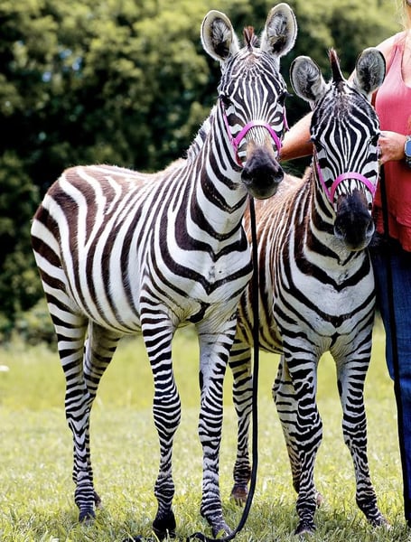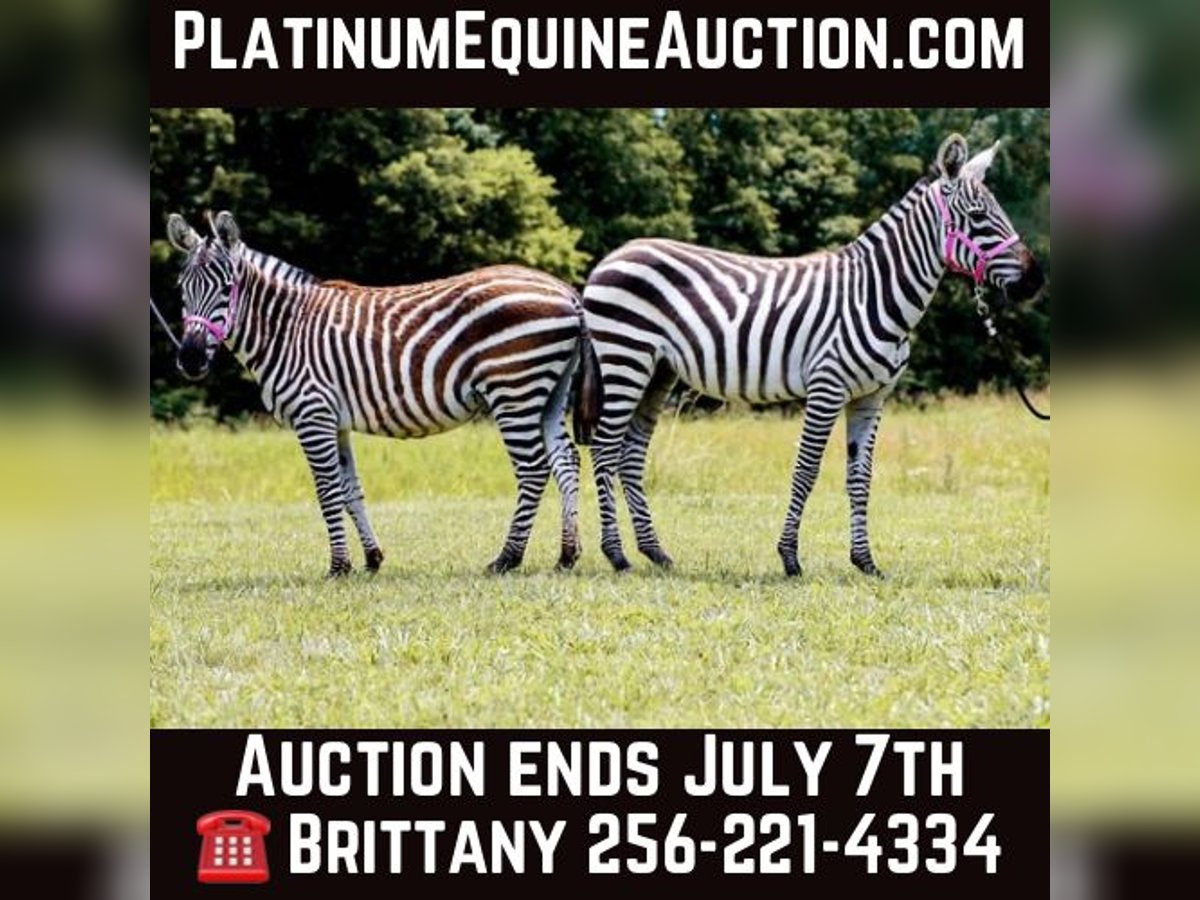 ONLINE AUCTION Place your bids at www.PlatinumEquineAuction.com Starting Bid $3500 Auction ends July 7th, 2024 Need a new saddle? Check out White Rock Saddles on our website or Facebook! You are bidding on the pair for 1 price (the final bid gets both zebras). Smiley and Stripes! Two male zebras that are a year and a half old! They were bottle babies! Super sweet, gentle, easy to handle, and super easy to catch! They have been around horses, ponies, goats, cattle, dogs,cats and kids! They love treats and love to be loved on! Stands for bath time! Easy to lead and have been played with by an 8 year old daily! And the whole neighborhood! They have also been used for photo shoots! Located in Mt. Hope, AL. Contact Brittany Little 256-221-4334. ONLINE AUCTION Place your bids at www.PlatinumEquineAuction.com Starting Bid $3500 Auction ends July 7th, 2024 Need a new saddle? Check out White Rock Saddles on our website or Facebook!