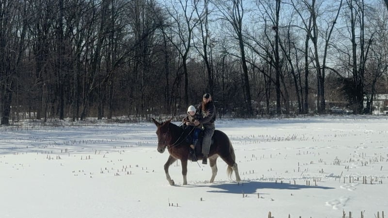 Her personality is one of her greatest assets. Joanne is easy to get along with, kind-minded, and consistent, making her a pleasure to have around the barn as well as out on the trail. She carries herself with a calm assurance that reflects experience and good handling — a mule that simply does her job and does it right.