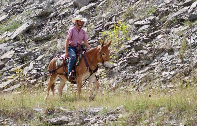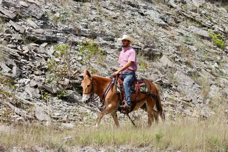 ONLINE AUCTION Place your bids at www.PlatinumEquineAuction.com Starting Bid $3500 Auction ends September 29th, 2024 Need a new saddle? Check out White Rock Saddles on our website or Facebook! Eleanor is a 9 year old, 14 hand Molly mule. I don’t think there are enough good things to say about her. She is very stocky and stout and has no issues carrying larger adults all day long out on the trails or in the mountains. Safe, quiet, and gentle are three great adjectives for her. The next best one is gorgeous! When it comes to riding, she is a joy! She walks, jogs, and lopes. All three gaits are smooth and comfortable to ride. She is extremely happy to ride on a full drape. If you put her at a pace, she will stay there. She is a bit of a more “whoa than go” type of mule. She is not lazy and she does move forward easily, but she is happiest going and easier paces. Eleanor neck reins nicely and is light in the mouth. She has a nice stop on her, backs up, and side passes. You can open and close gaits on her. We like to use her as a little utility mule. We have dragged and moved bunk feeders with her, carried equipment around and ponied kids on ponies behind her. She is the ideal mule to gather a herd horses and mules on. She will cut back and forth and turn them back if needed. When the herd gets excited and gallops off, she stays quiet and will walk or jog behind them and not get excited. She does the same when gathering cattle. She isn’t easily excited. We’ve had the whole family on her with no issues. She stands well for the farrier. She doesn’t mind her mane being clipped, she stands quietly to tack and untack, loads and unloads easily, and overall has nice ground manners. Eleanor has been on lots of camping trips and does well tied out on the high line overnight. She is sure footed and confident on the trails. She will ride in a britchen or crupper. She also rides just as well in a halter and lead rope or bosal as she does with a bridle on. Eleanor is just an overall really nice mule that we love to have around and ride. For more information, call or text Sammi Waugh 704-798-5497 Located in Brooksville, KY. ONLINE AUCTION Place your bids at www.PlatinumEquineAuction.com Starting Bid $3500 Auction ends September 29th, 2024 Need a new saddle? Check out White Rock Saddles on our website or Facebook!