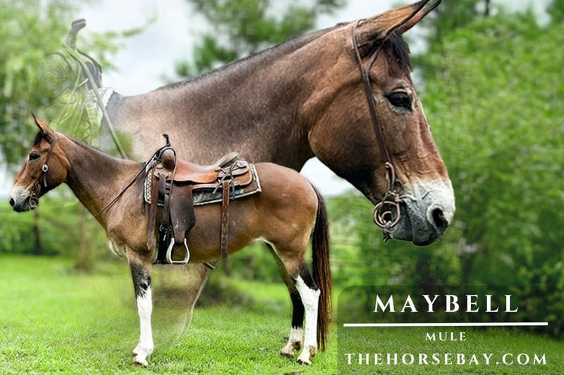 Maybell is one of the brokest mules around! She has a true one-hand neck rein, backs up every time you ask, has a nice flat foot walk, and will lope. Maybell has a nice stop just by saying ‘whoa.’ She loads and hauls perfectly and is excellent for the farrier. She is very easy to catch and is also great with her ears. Maybell does not have a mean bone in her body and is a joy to ride. She will ride alone or in a group and will cross anything you point at her. She’s truly a once-in-a-lifetime trail partner. She can also ride with a crupper if you prefer. Maybell is a friendly, seasoned trail mule that anyone would love.