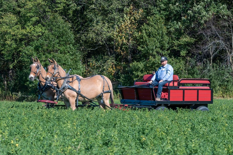 ⚜️𝐓𝐇𝐄 𝐅𝐀𝐋𝐋 𝐇𝐄𝐑𝐈𝐓𝐀𝐆𝐄 𝐂𝐋𝐀𝐒𝐒𝐈𝐂⚜️ Happening now thru MONDAY | NOVEMBER 3rd - Available EXCLUSIVELY on HorseBid's website! For more details and to register visit: www.Horsebid.com CONSIGNOR CONTACT: Rafter D Mules 651-303-7056 LOCATION: Hastings, MN BREED: Mule REGISTERED: No COLOR: Dun HEIGHT: 15 and 15.2 AGE: 12 GENDER: Molly Mule A team of mules may seem like a nostalgic thing of the past; a window shining open over a wild west that your grandpa told you stories about. This is the team of your dreams, but it's a dream you never have to wake up from; a reality that can be your own. Patsy and Loretta are the stars in our barn, proudly named after the famous ladies who were dubbed the queens of country music. They are a breathtaking view, with their gorgeous color and heavy dun factor. Patsy and Loretta are not the type of mules that you come across often, as they have it all: color, class, safety, and are a pure joy to be around! This fancy team is exactly what every beginner needs. They are easy to hitch, stepping over the tongue and waiting patiently until cued. Patsy and Loretta are exceptionally broke, and above all...SAFE! They have been around wildlife on the trails and roads, around other livestock, and our small pets. They are traffic safe, used to vehicles, other wagons, and even farm machinery. Just as any lady should be, these two are well mannered on the ground and under harness. We know that there are indeed 7 Wonders of the World, but, in our opinion, these mollies could be considered the 8th and 9th. Patsy and Loretta are not a team that anyone will be capable of matching anytime soon, so do not miss out on your chance to have your share of the bragging rights these gals offer. This gorgeous team was trained by voice command and are suitable for a complete beginner to drive. They are gentle, making them so easy and enjoyable to be around. Whether you would like a team to take for the church hayride, a team to ride out alone with amongst the quiet of nature, or a team that will babysit you at the annual chuckwagon races and western socials, Patsy and Loretta are your gals! They get along great when turned out with pasture mates and are also happy to be turned out together. They are also easy to catch! These fancy ladies are at the perfect age of maturity, with a long life ahead of them to provide someone with years of enjoyment. If you have any questions about Loretta and Patsy or would like to meet them prior to the auction ending, please contact Dillon at Rafter D Mules 651-303-7056. We are so excited to have the opportunity to pair you with this iconic team!