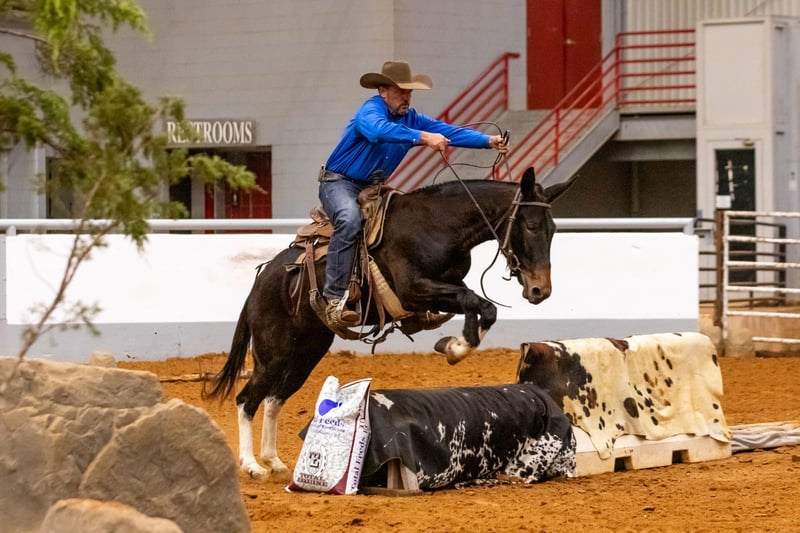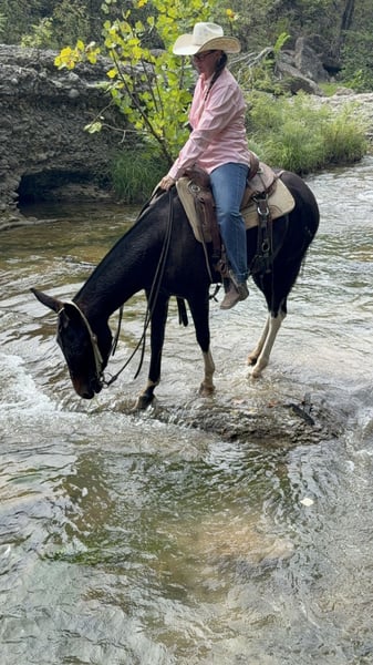 ⚜️ 𝓽𝓱𝓮 𝐇𝐨𝐫𝐬𝐞𝐦𝐚𝐧'𝐬 𝓢𝓱𝓸𝔀𝓬𝓪𝓼𝓮⚜️ Happening now thru MONDAY | DECEMBER 1st - Available EXCLUSIVELY on HorseBid's website! For more details and to register visit: www.Horsebid.com CONSIGNOR CONTACT: Logsdon Mules - John Logsdon 580-465-8727 LOCATION: Fittstown, OK BREED: Mule REGISTERED: No COLOR: Black with 4 white legs HEIGHT: 14.3 AGE: 4 GENDER: Molly Mule Meet Reta, a stunning 4-year-old Molly mule with a proven track record and a heart of gold. With extensive trail riding experience in Oklahoma and Colorado, Reta has developed into a reliable and athletic companion. This beautiful young mule stands 14.3 hands tall and boasts impressive credentials: - *Trail Ridden*: Comfortable and sure-footed on varied terrain in OK and CO - *Ponied Colts*: Stays quiet under pressure - *EXCA Reserve Champion*: Open Mule Division - showcasing her talent and willingness Reta’s disposition, looks and ability are sure to turn heads wherever she goes. Whether you're looking for a trail partner, a ranch mule that can be shown, or just a trusted companion, Reta fits the bill. If you're seeking a young, talented, and versatile mule with a bright future, look no further. Contact us to learn more about Reta and arrange to come and meet her!